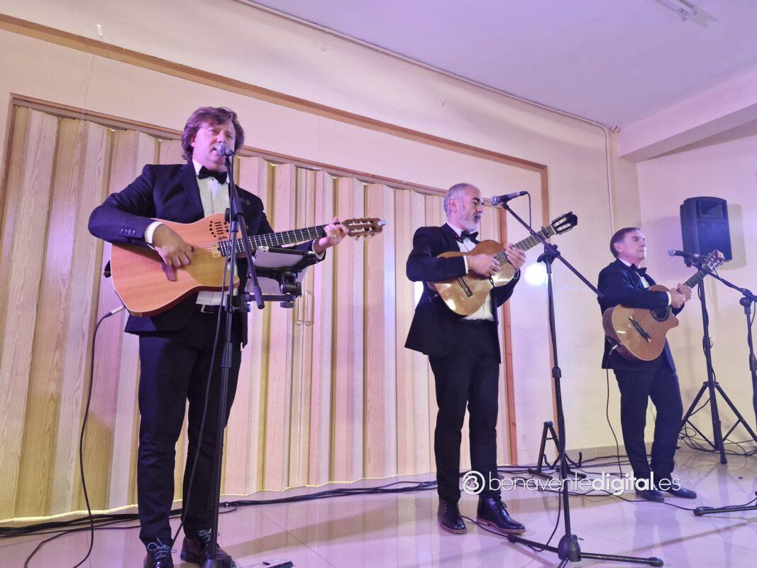 El rotundo éxito de la muestra expositiva y el generoso agradecimiento a todos los colaboradores y visitantes era expresado en la tarde noche del viernes por Eduardo Romero Nieto, en el transcurso de una velada festiva con la magistral interpretación del Trío Bohemia. Los integrantes de este trío ponferradino, Alberto González, Fernando San Miguel y Jorge Vega, deleitaron a un público complacido y entregado con sus voces y acordes de guitarra.
