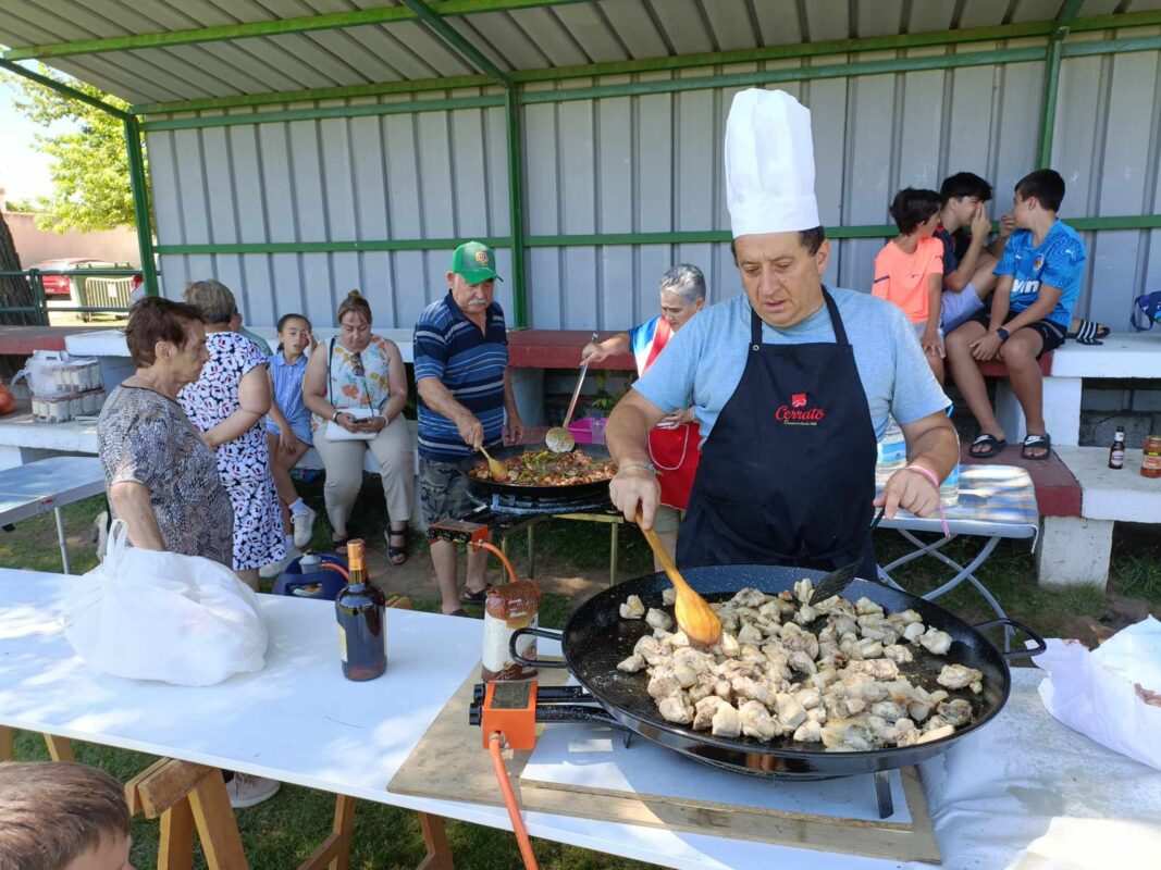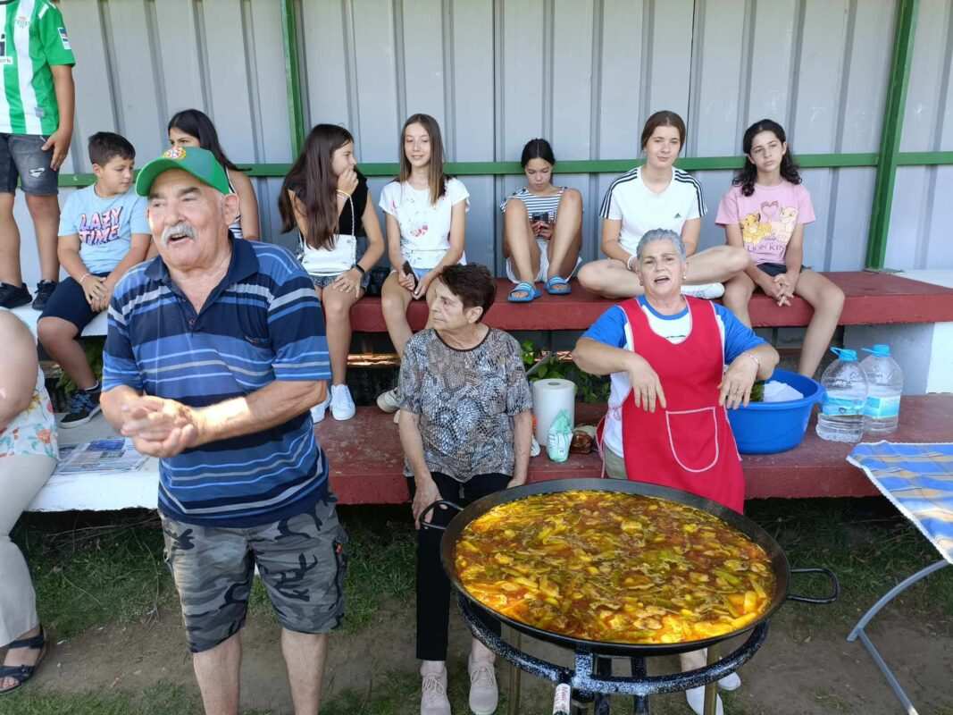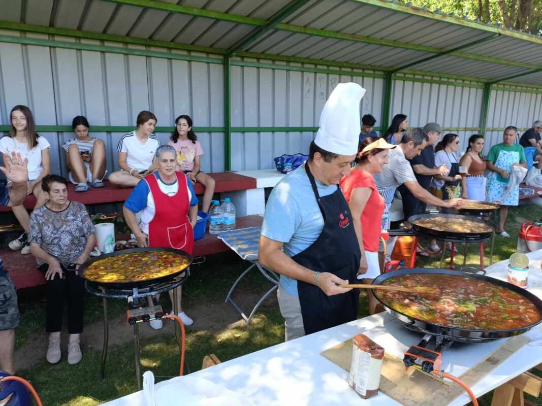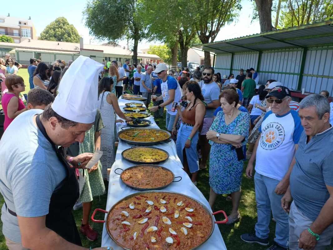 En el estadio de fútbol «las Eras» de Santa Croya de Tera se percibía este mediodía un aroma especial. Una gran hilera de fogones instalados a la vera del graderío servían para la elaboración de paellas por chefs muy particulares. Hasta un total de 16 paellas se elaboraron con ingredientes ya cerrados por la organización del concurso a cargo de la Comisión de Fiestas.