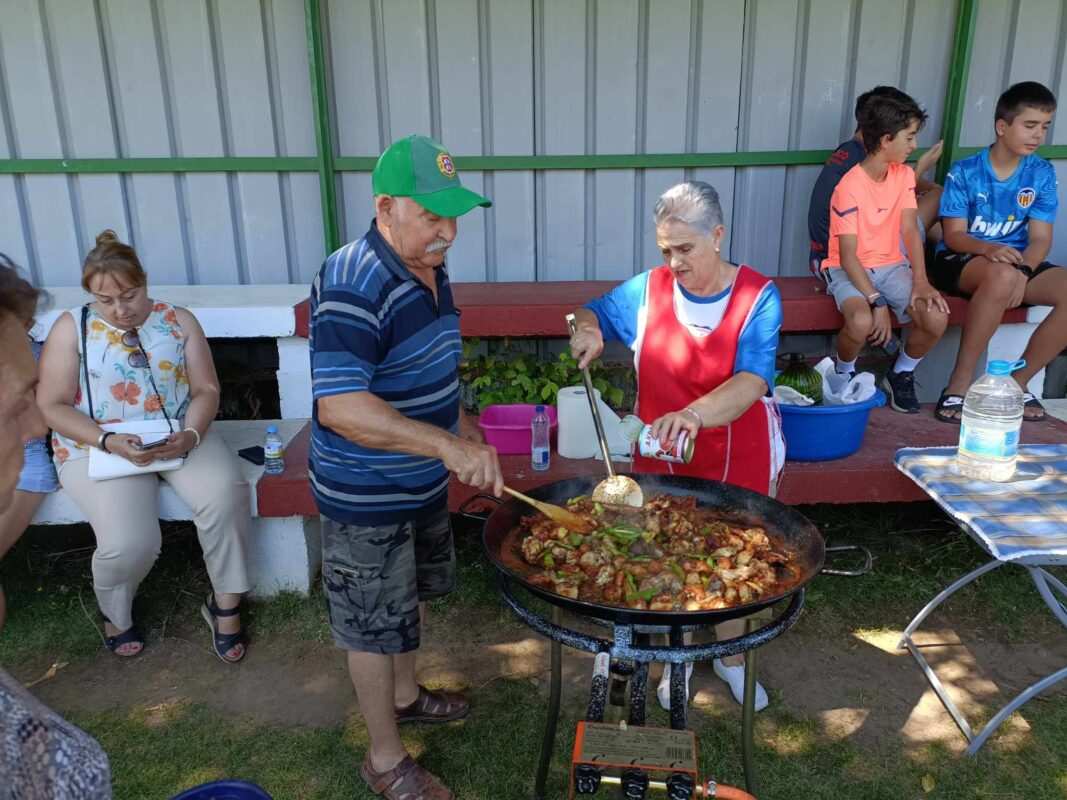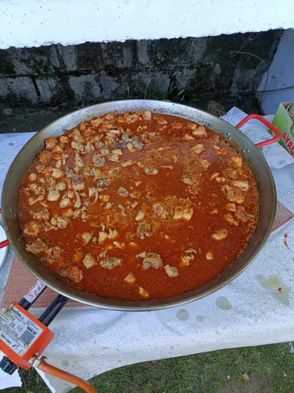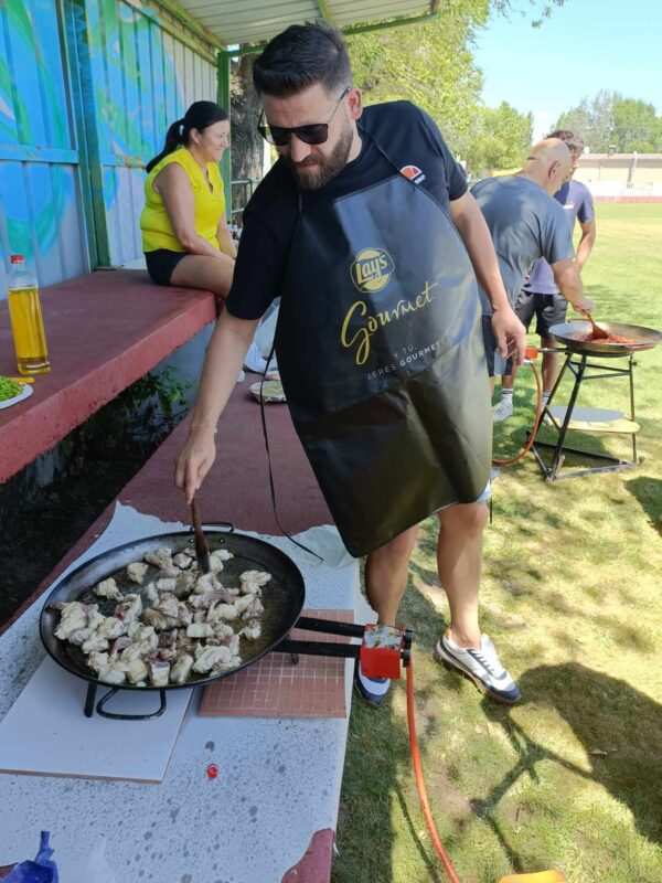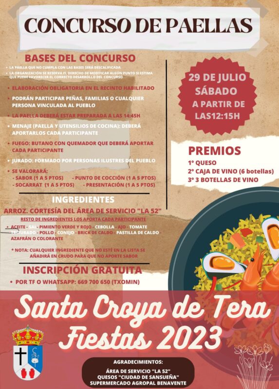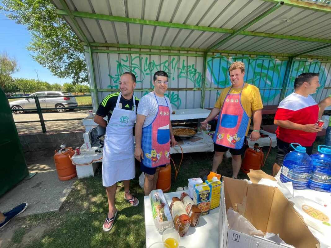 En el estadio de fútbol «las Eras» de Santa Croya de Tera se percibía este mediodía un aroma especial. Una gran hilera de fogones instalados a la vera del graderío servían para la elaboración de paellas por chefs muy particulares. Hasta un total de 16 paellas se elaboraron con ingredientes ya cerrados por la organización del concurso a cargo de la Comisión de Fiestas.
