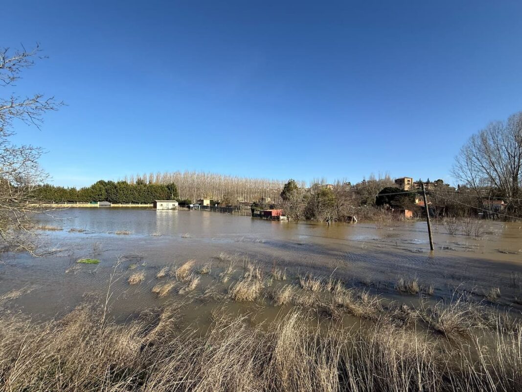 La crecida del río Órbigo en Benavente ha vuelto a provocar este jueves 12 de febrero nuevas inundaciones en la zona de las Huertas, apenas cinco días después del episodio registrado el pasado sábado. El agua ha cubierto nuevamente caminos y fincas, obligando a la Policía Local a cortar el acceso desde la calle de las Huertas como medida preventiva.