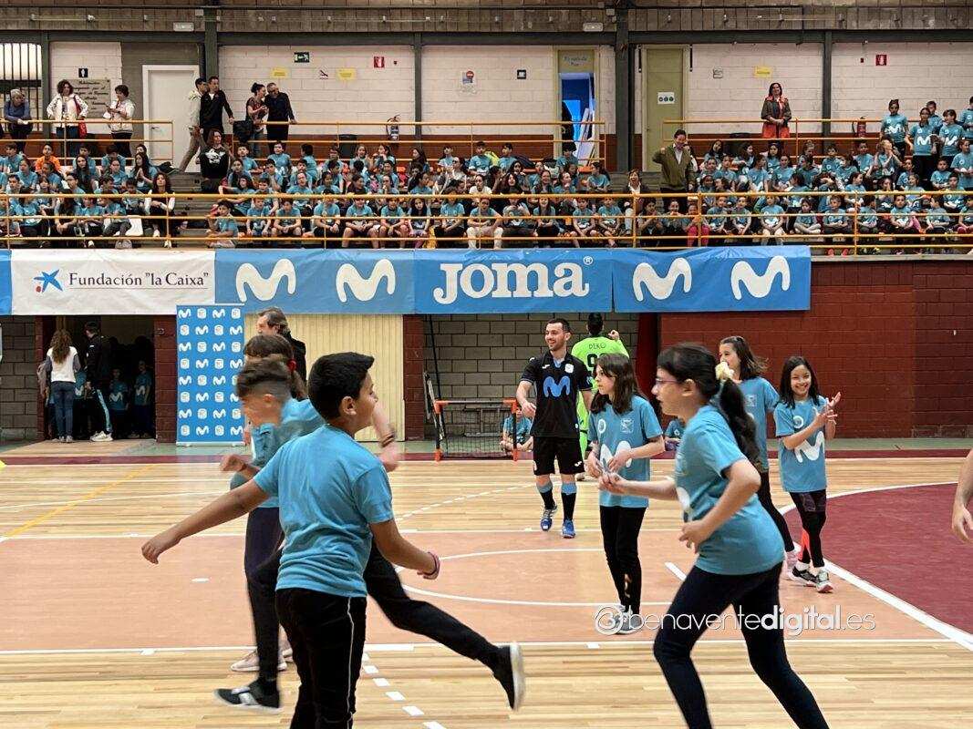 El presentador Iñaki Cano fue el encargado de poner patas arriba el pabellón de La Rosaleda animando en cada momento a los niños y presentando a los integrantes del Inter Movistar. La entrada más esperada llegaba de la mano del portero benaventano, Bruno Galindo, que tras mucho esfuerzo en el mundo del deporte ha llegado a formar parte de este importante equipo en el fútbol sala. Un recibimiento acompañado incluso por pancartas.