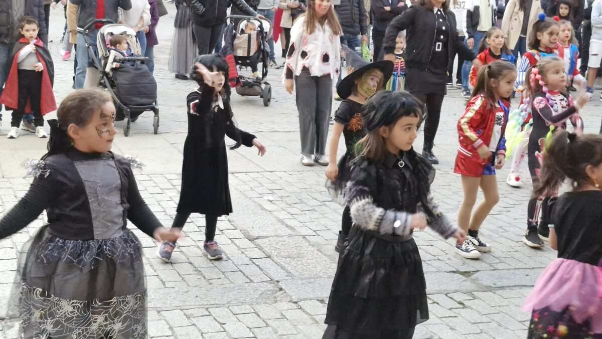 A las 19:00 horas, después de una hora de ensayo, llegó el momento esperado: el flashmob de Halloween. La plaza se llenó de espectadores, quienes rodearon a los bailarines para presenciar la coreografía. Con las primeras notas, los pequeños, ahora convertidos en «espeluznantes» bailarines, comenzaron a moverse en sincronía. El resultado fue asombroso: una marea de disfraces y movimientos que arrancaron aplausos y vítores de todo el público.