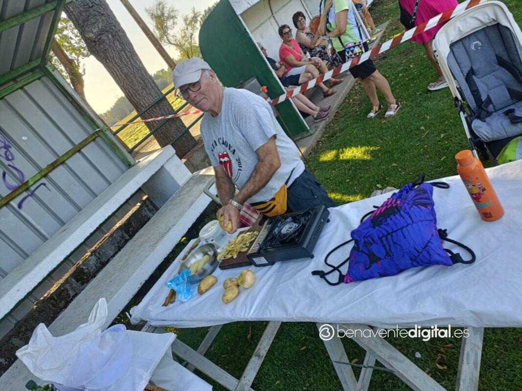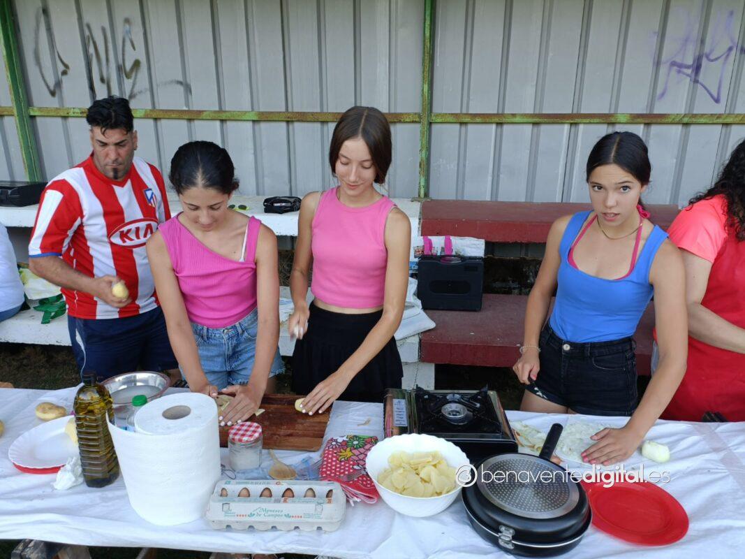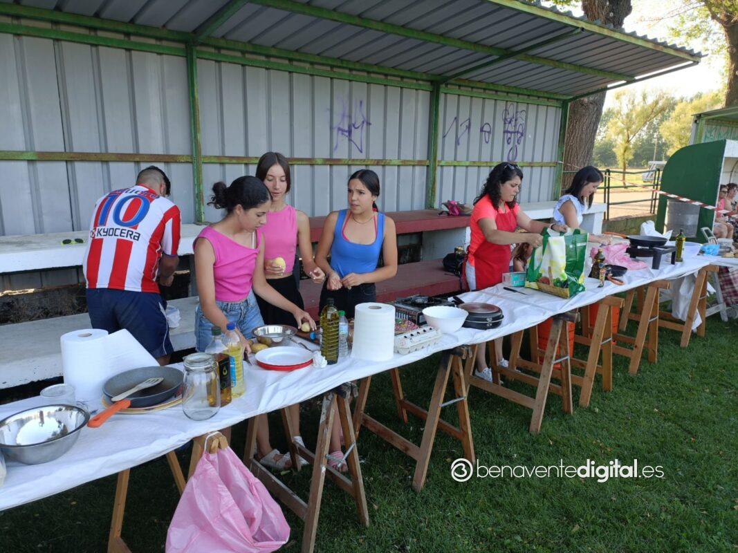 Niños y mayores, convertidos en chefs de la ribera del Tera, por eso del privilegiado escenario a la sombra del graderío del campo de fútbol, lograron brindar simpáticas escenas con el delantal.
