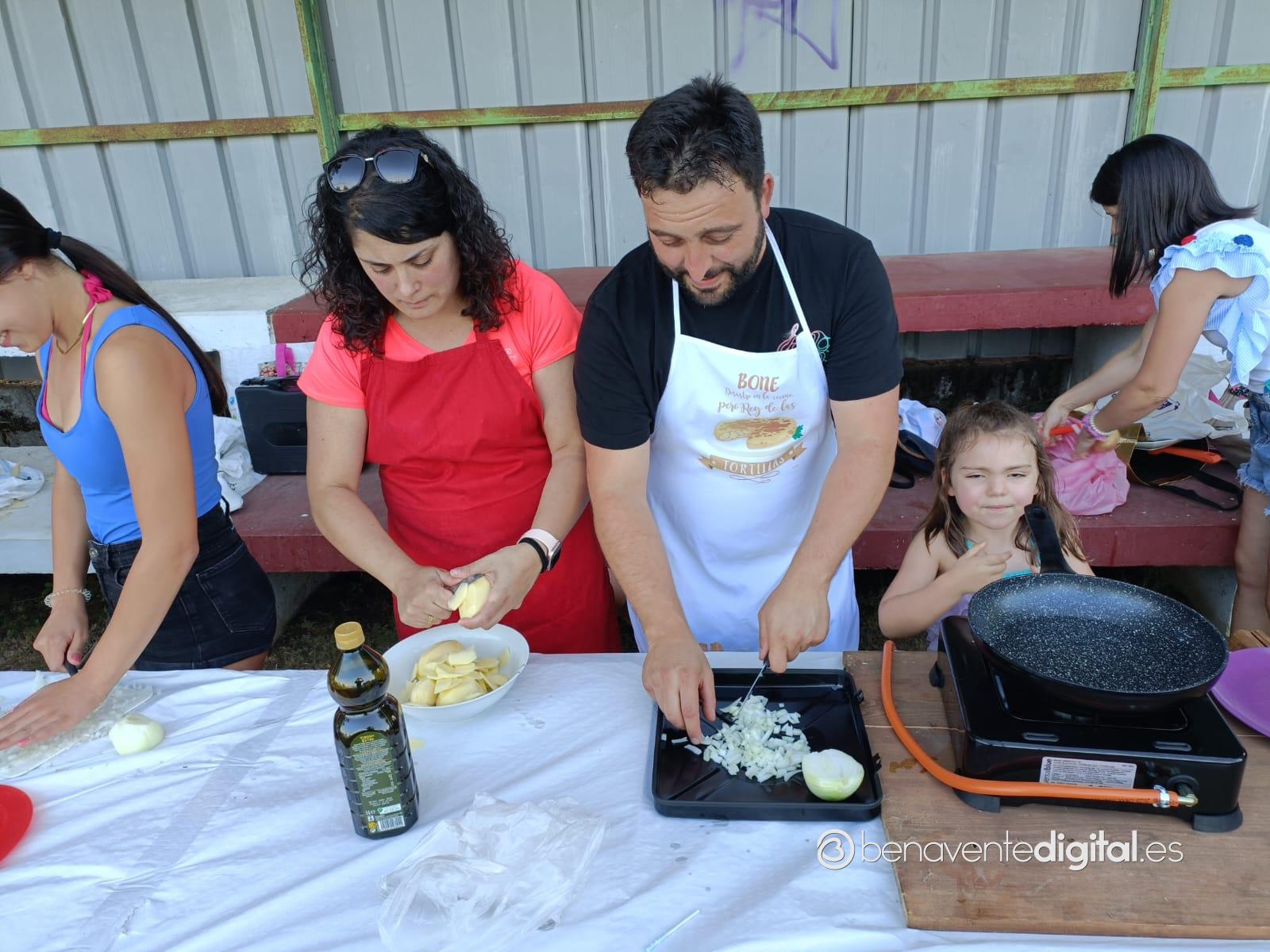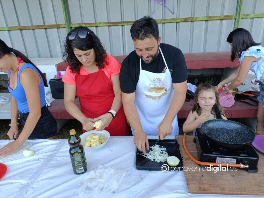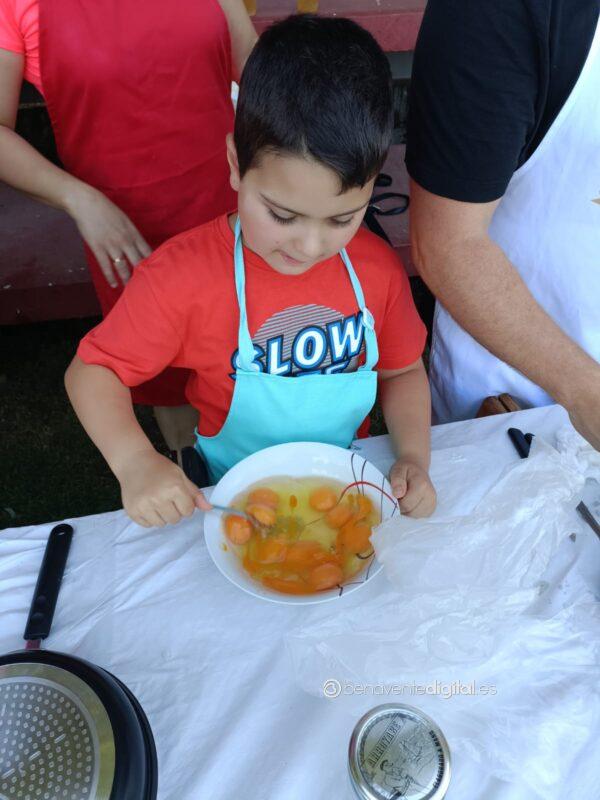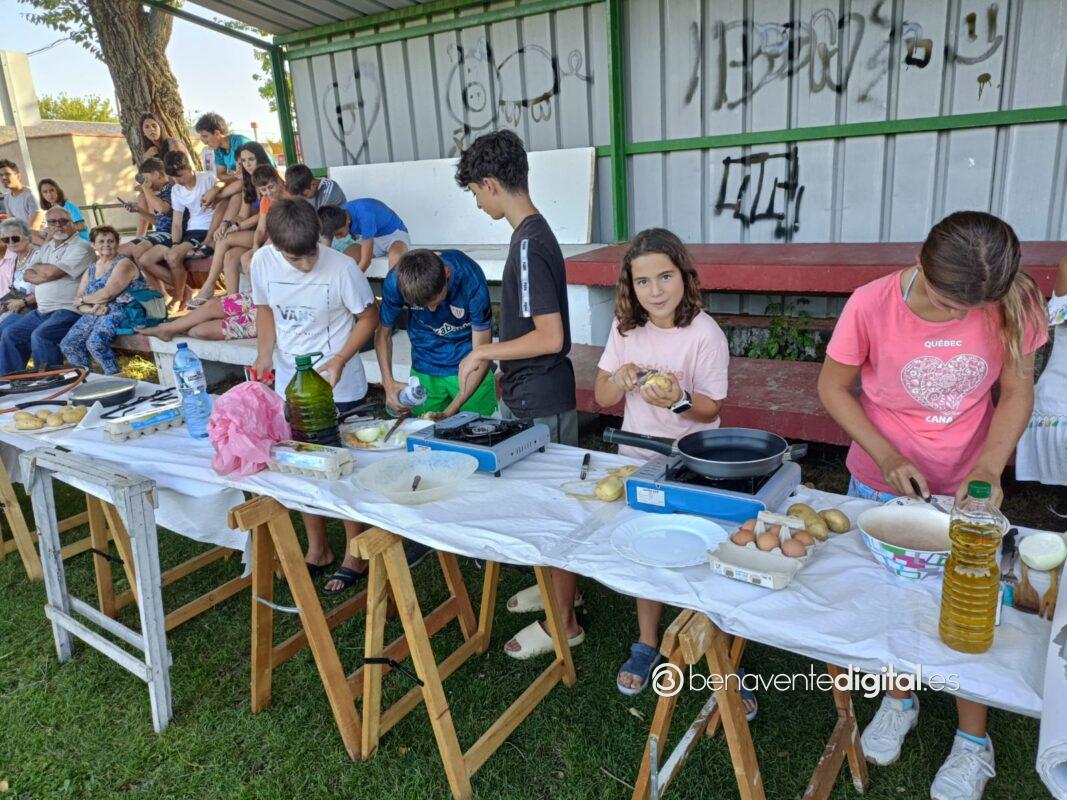 Niños y mayores, convertidos en chefs de la ribera del Tera, por eso del privilegiado escenario a la sombra del graderío del campo de fútbol, lograron brindar simpáticas escenas con el delantal.