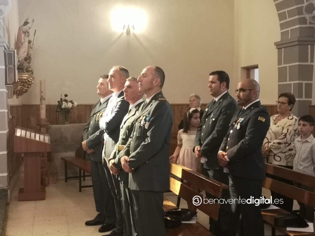 Una solemne misa celebrada en la iglesia parroquial de Camarzana, presidida por el párroco berciano, Pedro Andrés, y concelebrada por el párroco de Camarzana, Raúl Vega, arrancaba los actos festivos de la jornada en homenaje a la Guardia Civil, en la que participó también el diputado provincial de zona en el gobierno de la institución provincial, Emilio Fernández.
