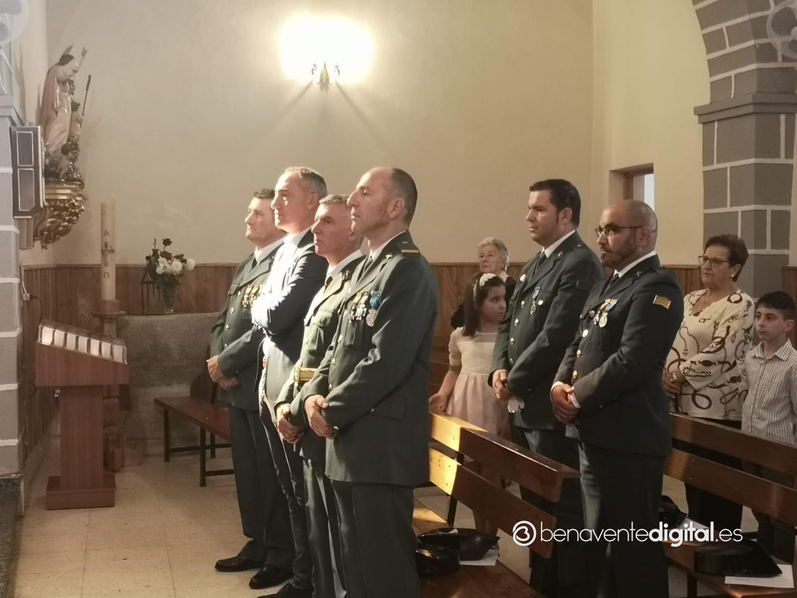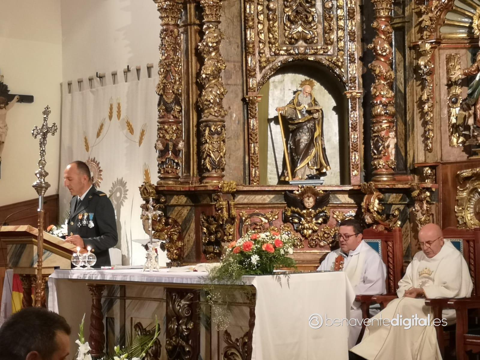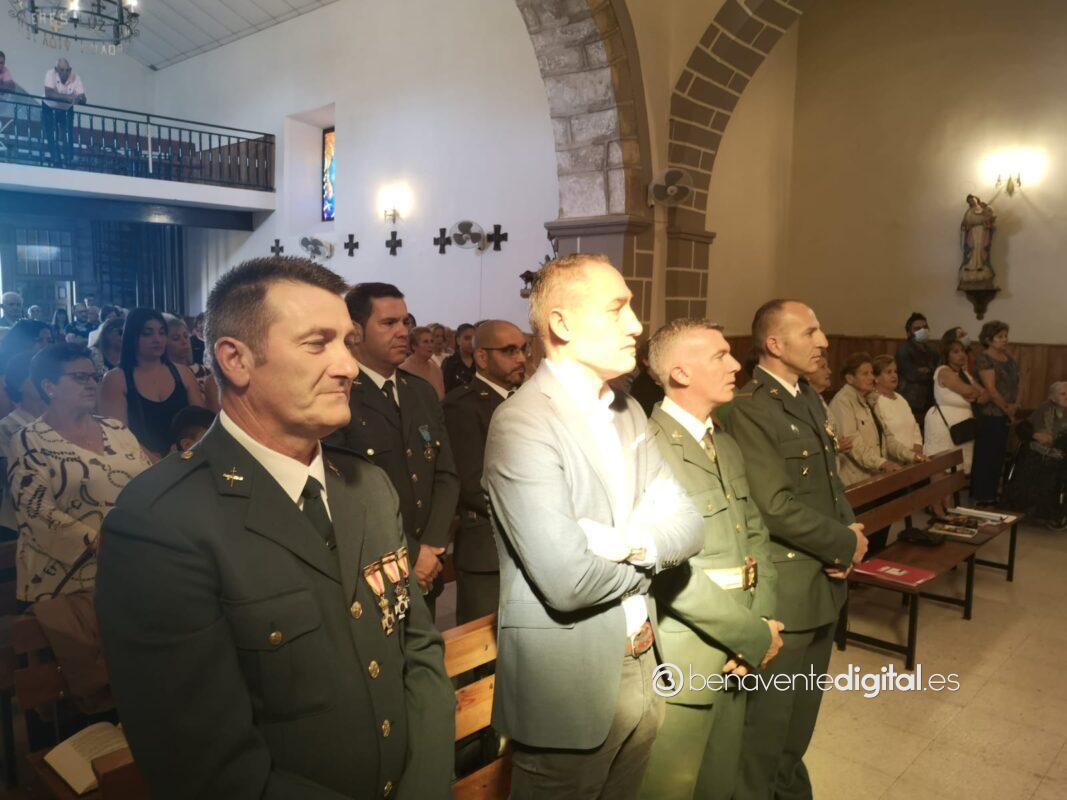 Una solemne misa celebrada en la iglesia parroquial de Camarzana, presidida por el párroco berciano, Pedro Andrés, y concelebrada por el párroco de Camarzana, Raúl Vega, arrancaba los actos festivos de la jornada en homenaje a la Guardia Civil, en la que participó también el diputado provincial de zona en el gobierno de la institución provincial, Emilio Fernández.