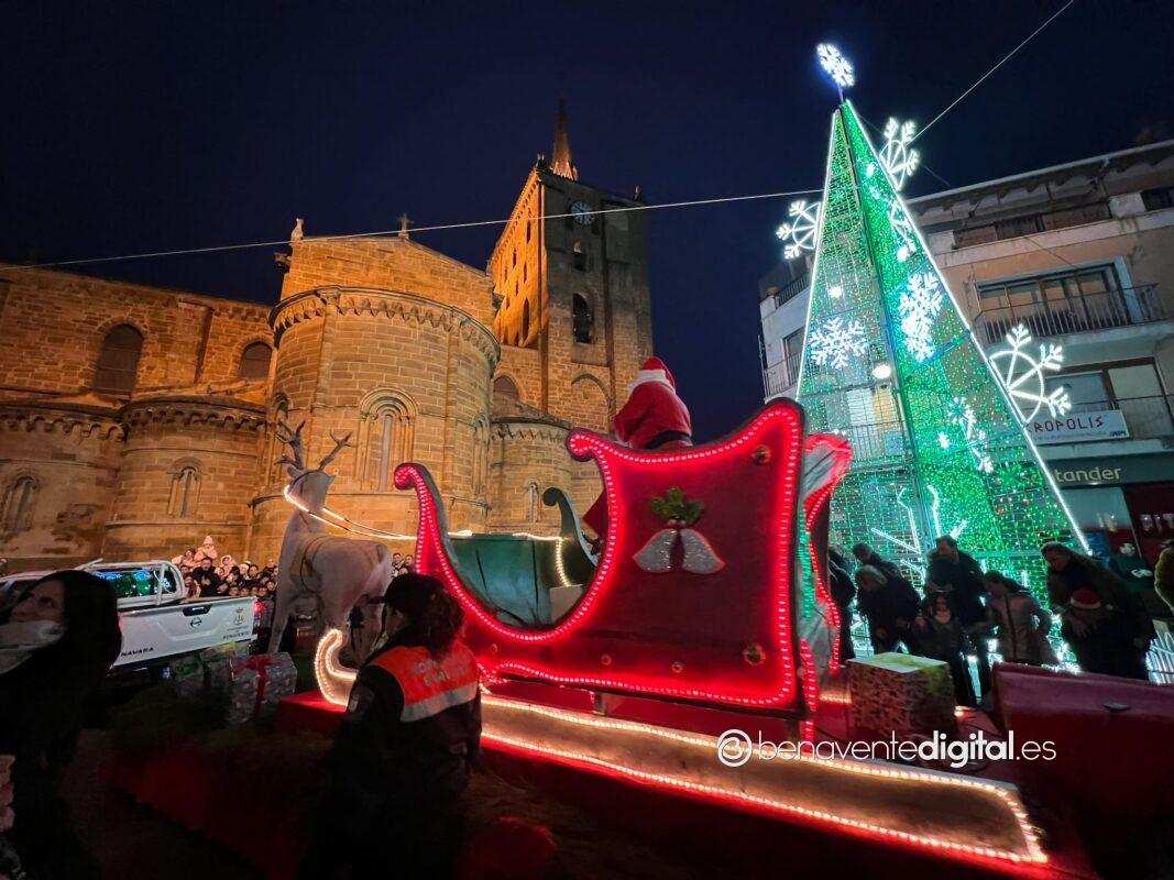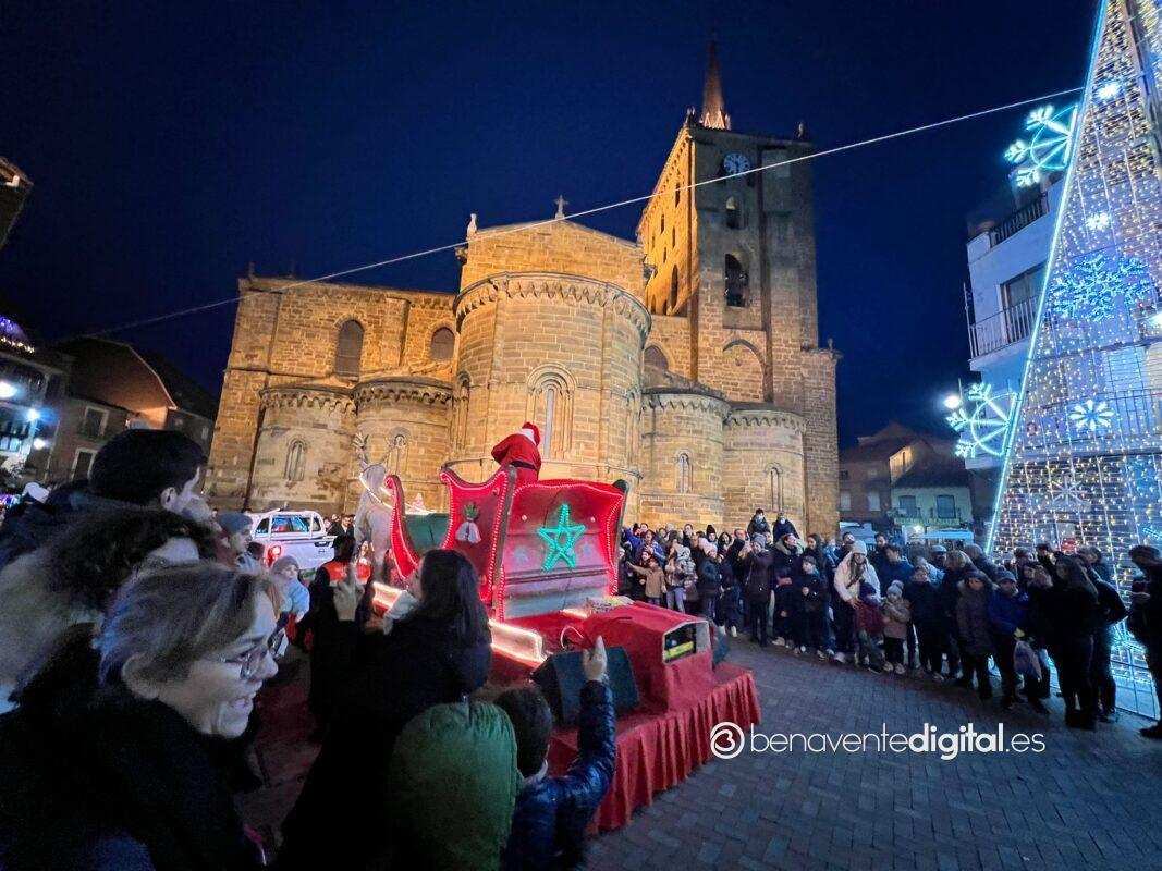 Esta tarde la ciudad de Benavente se llenó de magia navideña con la llegada de Papá Noel. El desfile arrancó a las seis de la tarde en la calle Maragatos, inundando la ciudad con alegría y emoción. Los más pequeños, aguardaban con ansias la llegada de Papá Noel.