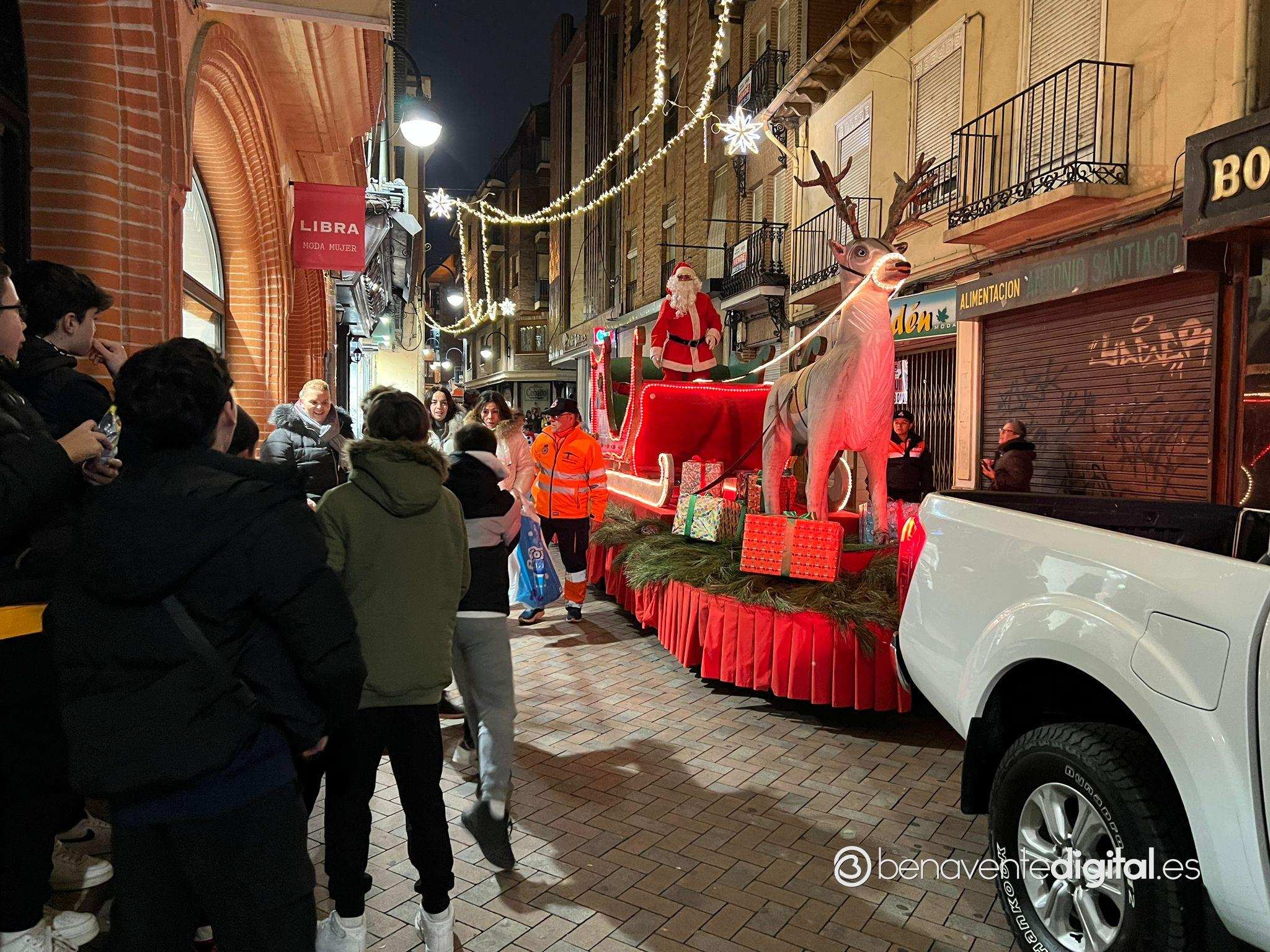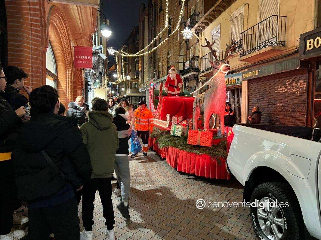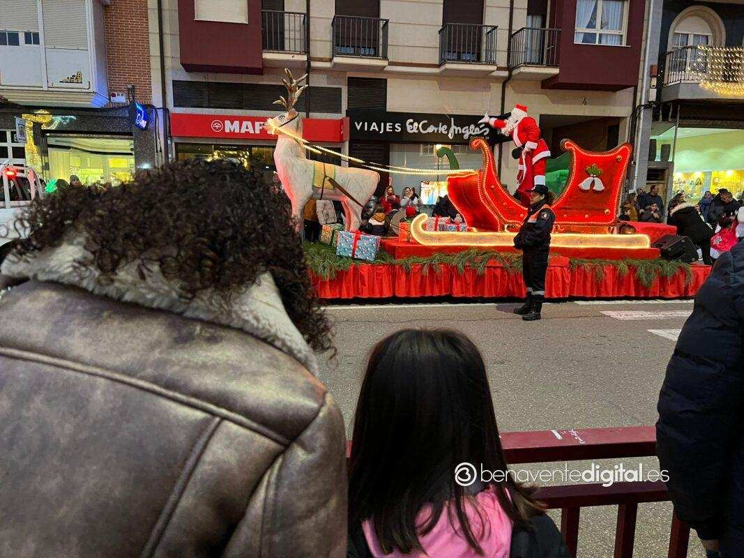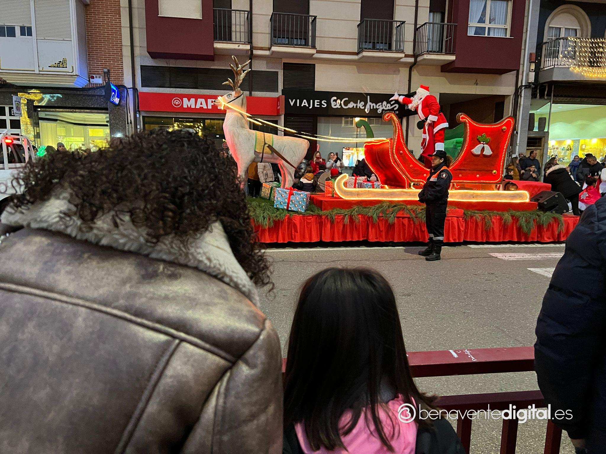 Esta tarde la ciudad de Benavente se llenó de magia navideña con la llegada de Papá Noel. El desfile arrancó a las seis de la tarde en la calle Maragatos, inundando la ciudad con alegría y emoción. Los más pequeños, aguardaban con ansias la llegada de Papá Noel.