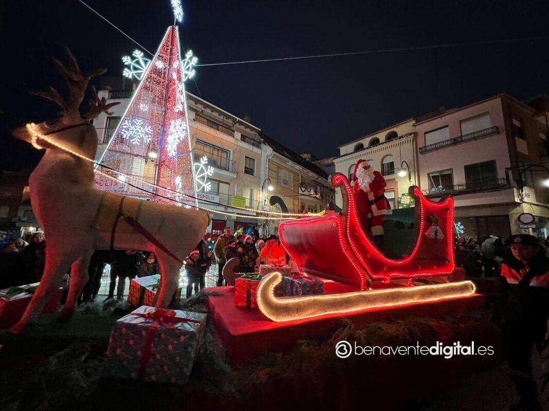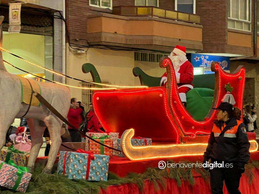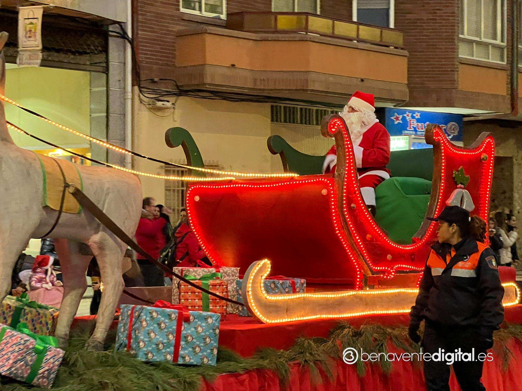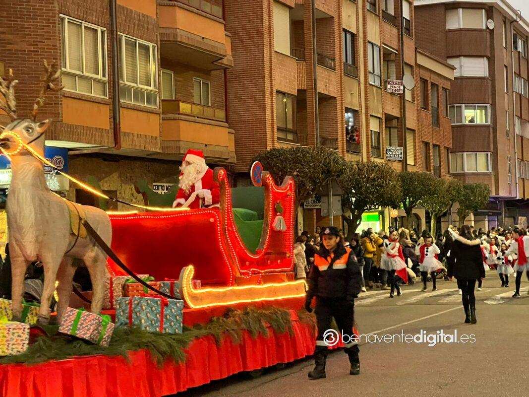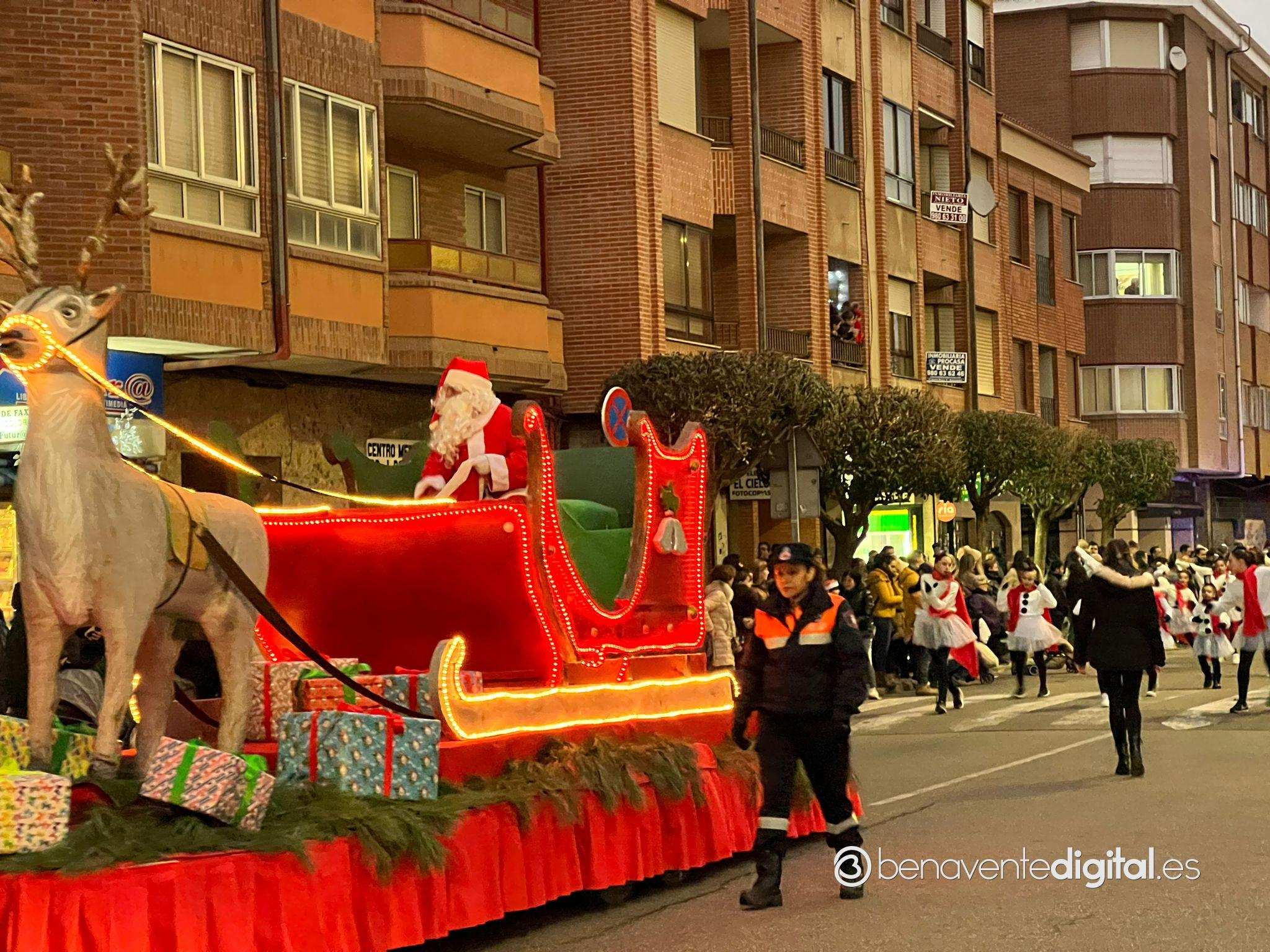 Esta tarde la ciudad de Benavente se llenó de magia navideña con la llegada de Papá Noel. El desfile arrancó a las seis de la tarde en la calle Maragatos, inundando la ciudad con alegría y emoción. Los más pequeños, aguardaban con ansias la llegada de Papá Noel.