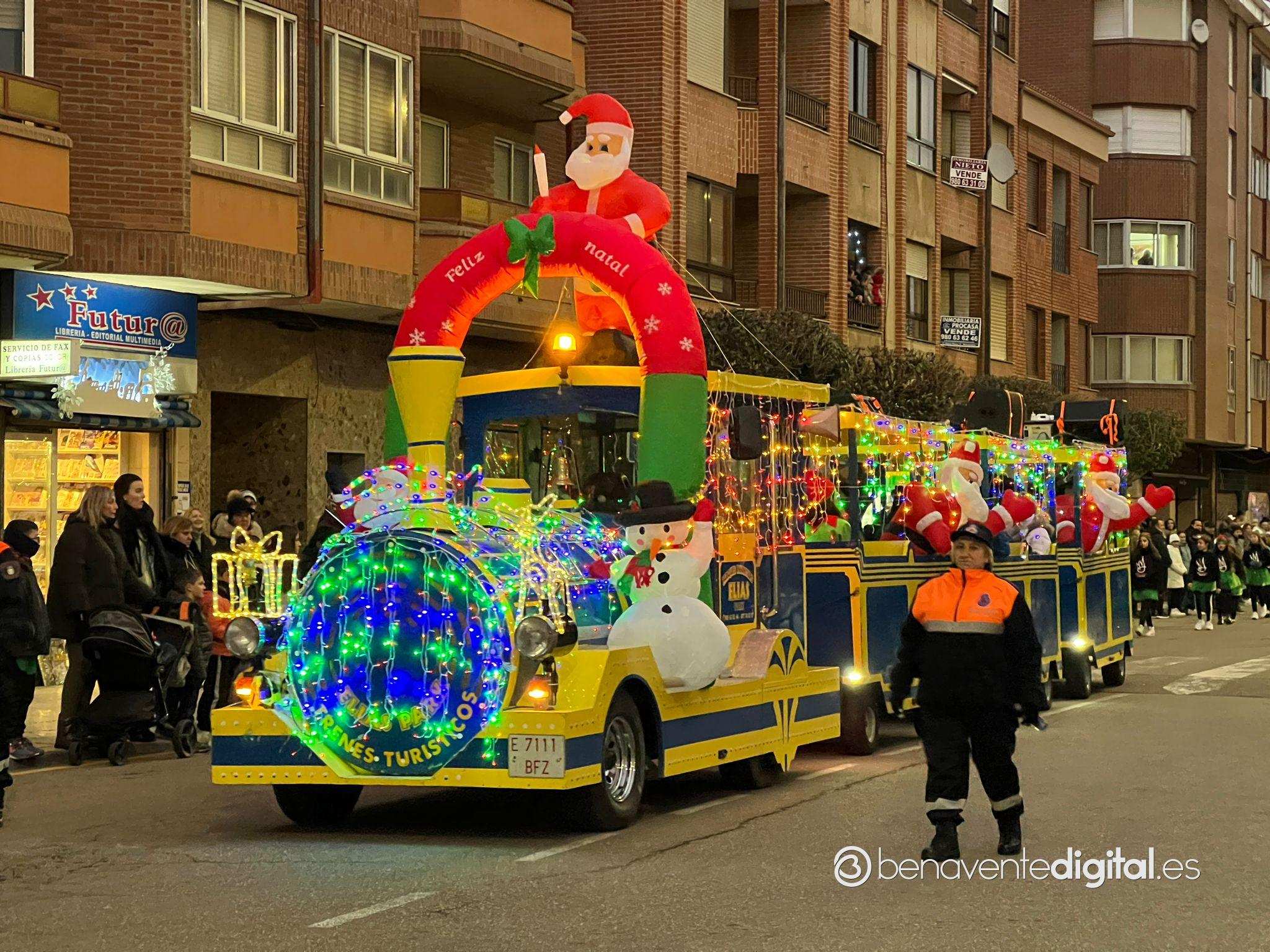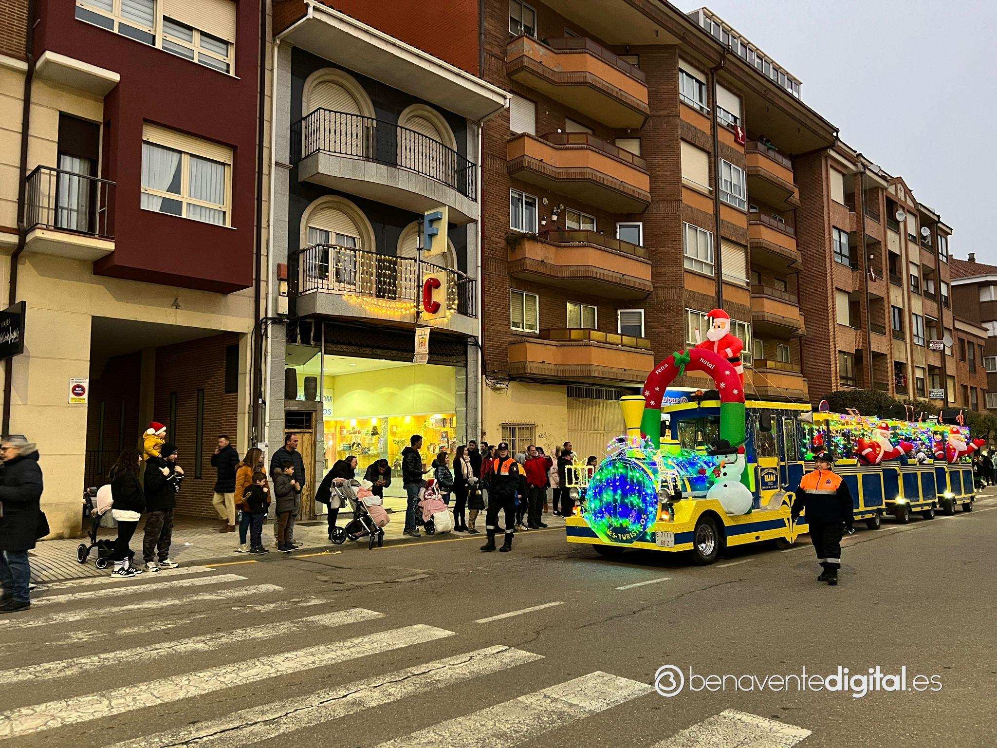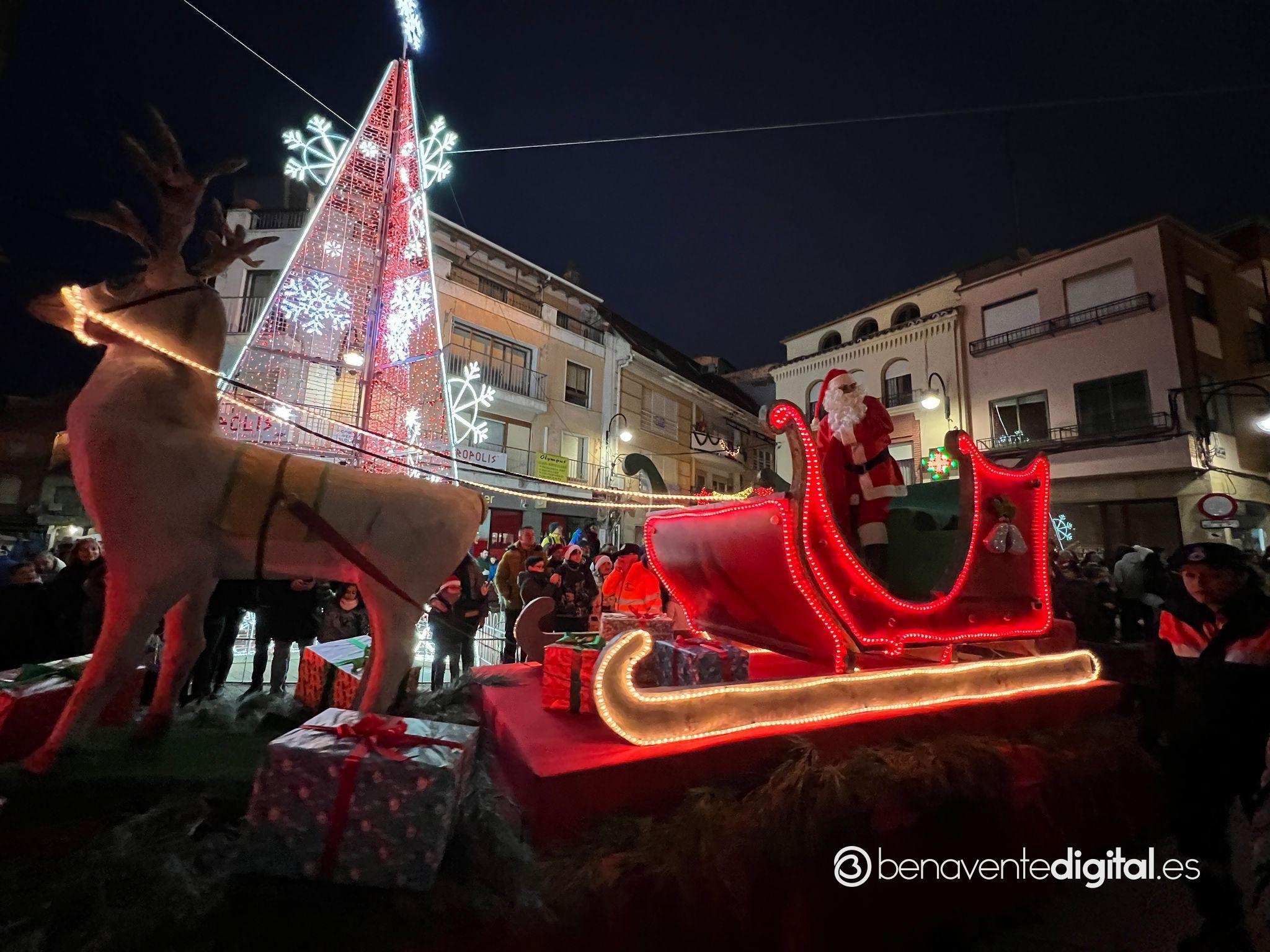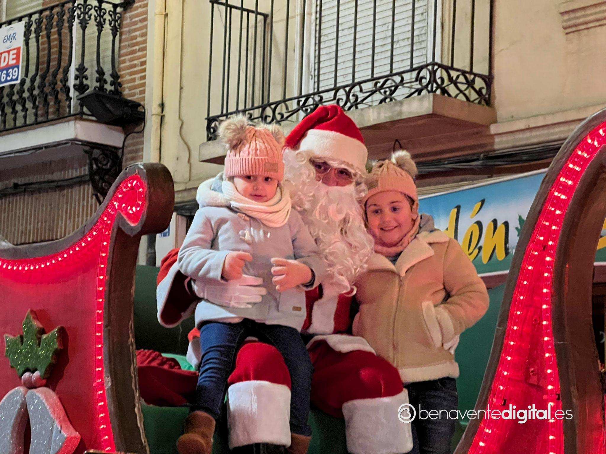 Esta tarde la ciudad de Benavente se llenó de magia navideña con la llegada de Papá Noel. El desfile arrancó a las seis de la tarde en la calle Maragatos, inundando la ciudad con alegría y emoción. Los más pequeños, aguardaban con ansias la llegada de Papá Noel.
