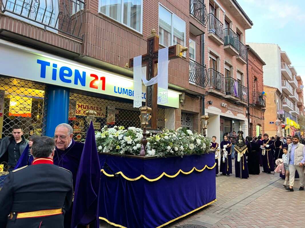 Orden procesional: Cruz Parroquial, Nazarenos de Cruz, Paso de La Santa Vera Cruz, Paso de La Oración en el Huerto, Imagen del Ecce Homo escoltado por la Policía Local, Imagen de Jesús Nazareno, Paso de la Desnudez o Redopelo y por último la Imagen de La Virgen de La Soledad, escoltada por la Guardia Civil, cerrando la Procesión representantes del Clero acompañados por los Alcaldes Caballeros de las Cofradías, autoridades y miembros de la Junta Pro-Semana Santa.