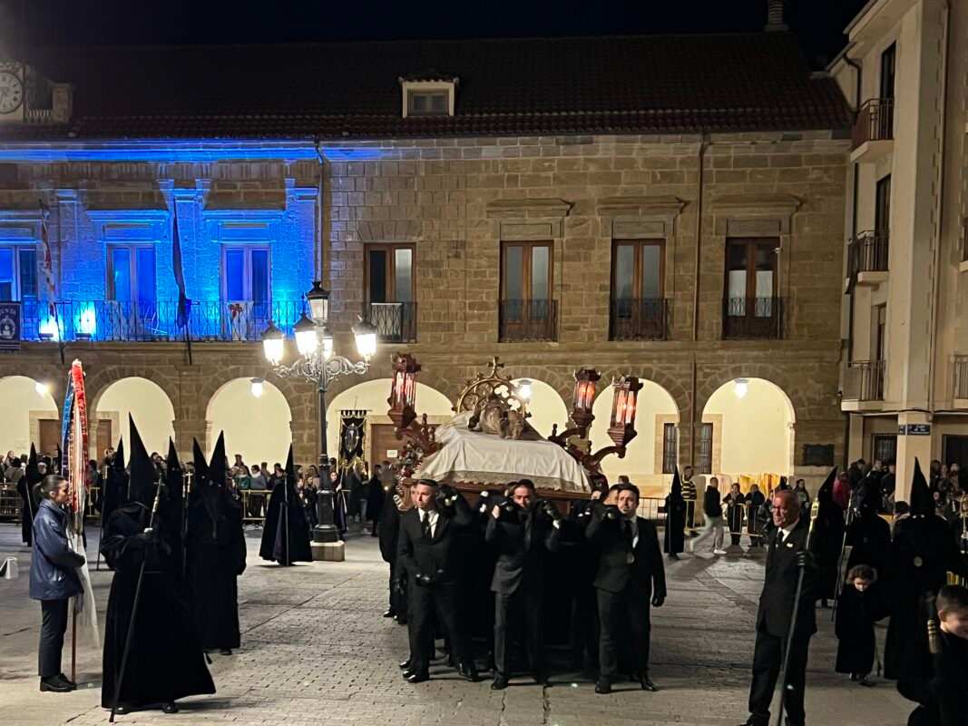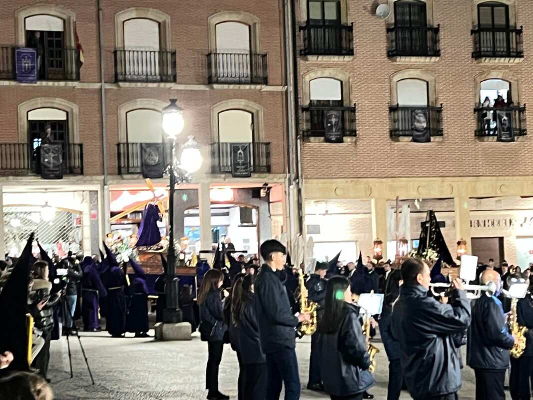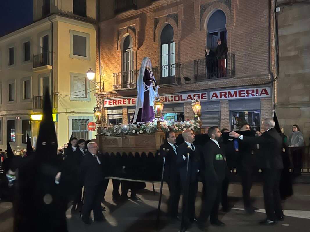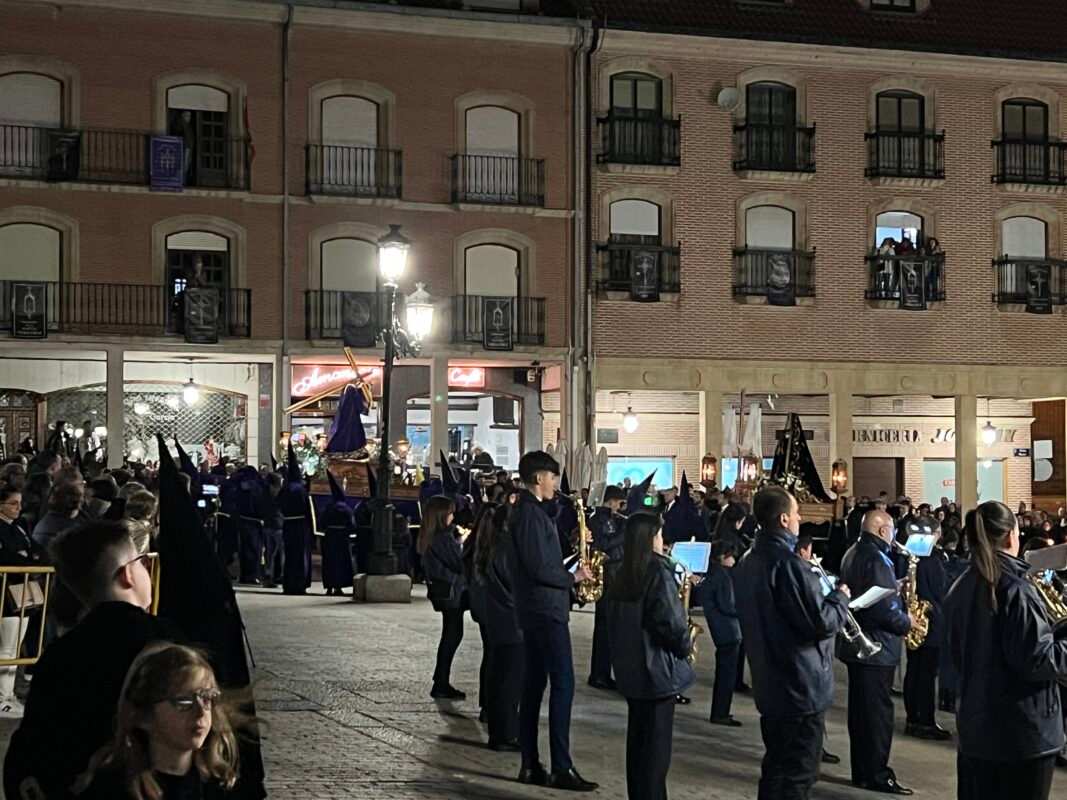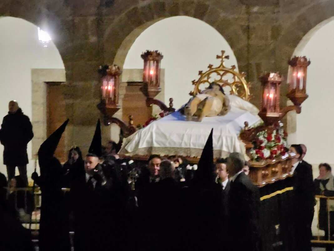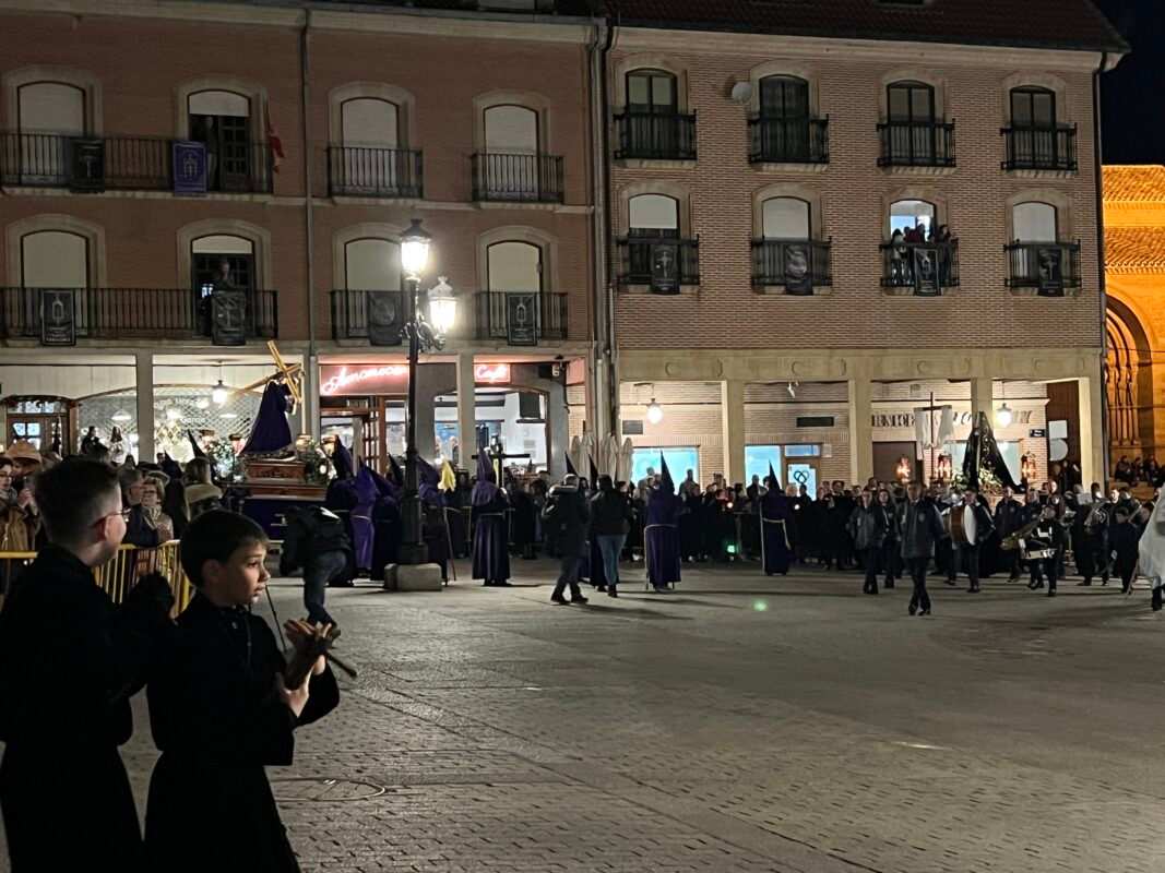 Esta noche se ha celebrado en Benavente la Procesión de las Tinieblas de la Real Cofradía del Santo Entierro de Nuestro Señor Jesucristo y la Cofradía de la Santa Vera Cruz que partió de la Ermita de la Soledad pasadas las nueve de la noche y tras el acto religioso llevado a cabo por el capellán de la cofradía.