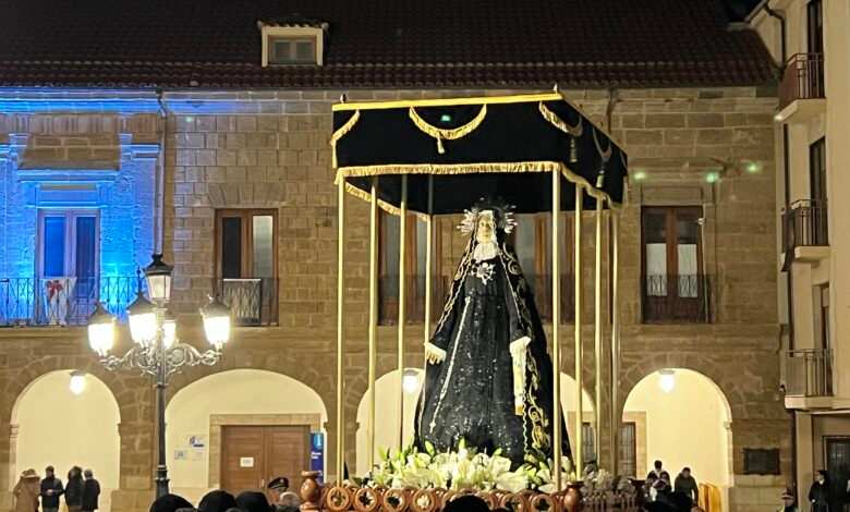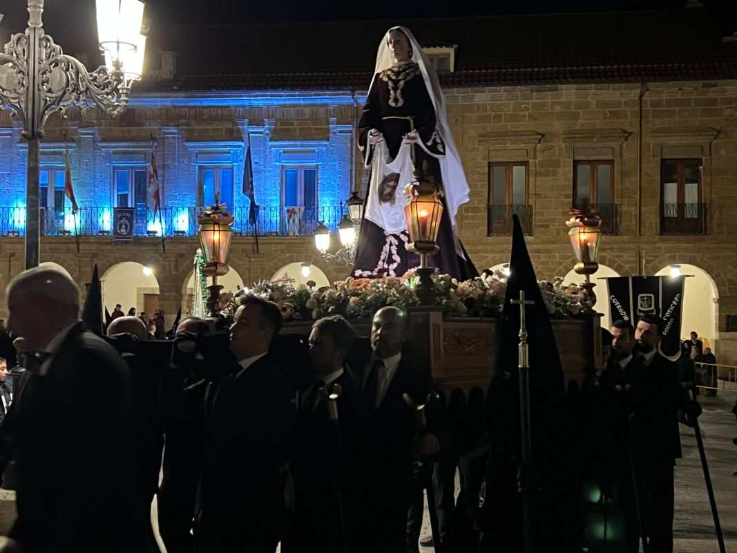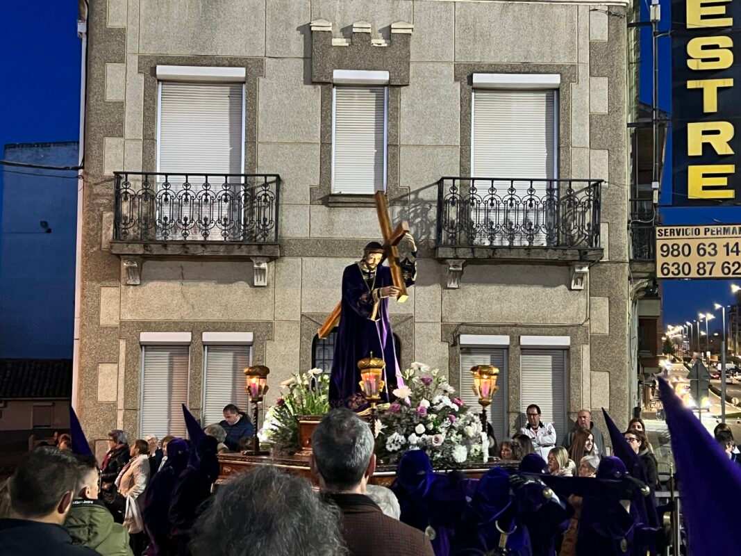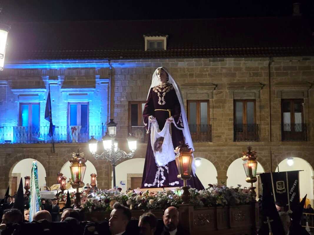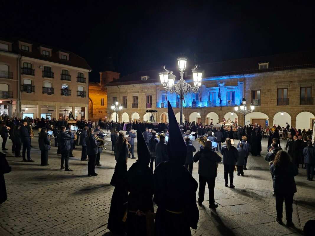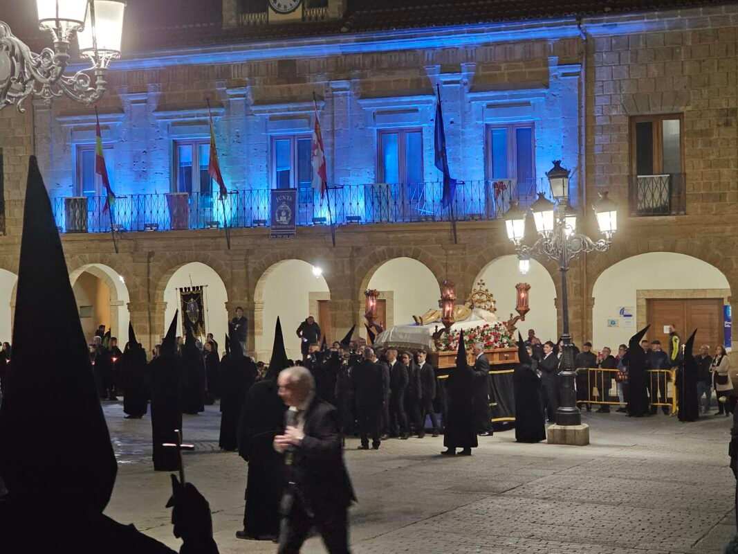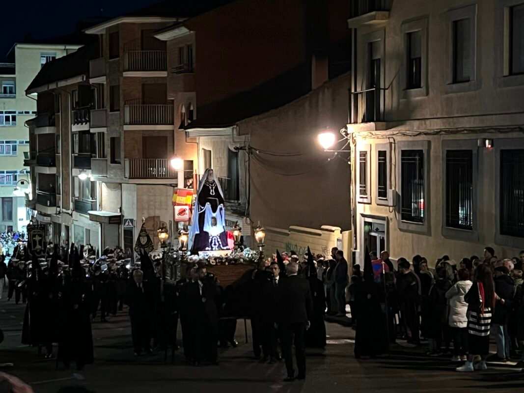 Partiendo desde La Ermita de la Soledad por calle Santa Cruz y calle Encomienda, los pasos llegaron a la plaza Mayor en la que la Virgen de la Soledad realizó venias a la Imagen de Jesús con la Cruz. Tras este momento de emoción y recogimiento, la procesión se dividió en dos: la Imagen de Jesús con la Cruz a cuestas y la Imagen de la Soledad se dirigieron hacia la Iglesia de San Juan del Mercado; continuando el resto de la Procesión por calle Cortes Leonesas, calle de los Herreros y finalizando en la Iglesia de Santa María la Mayor.