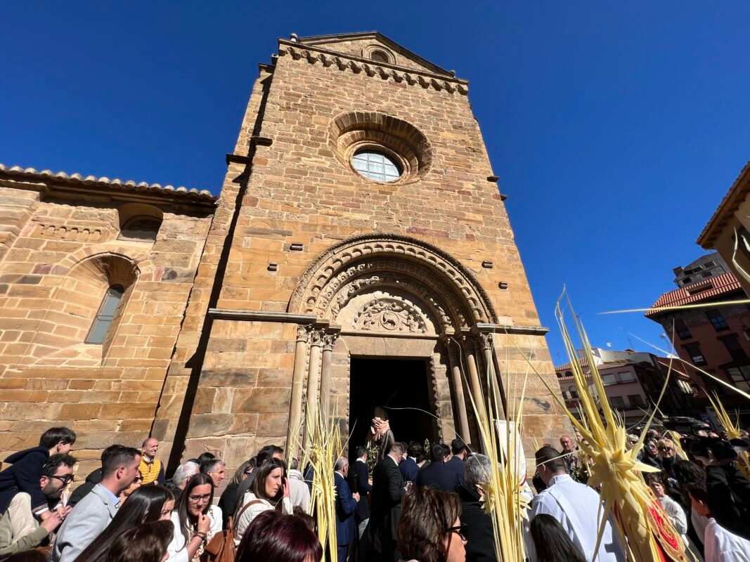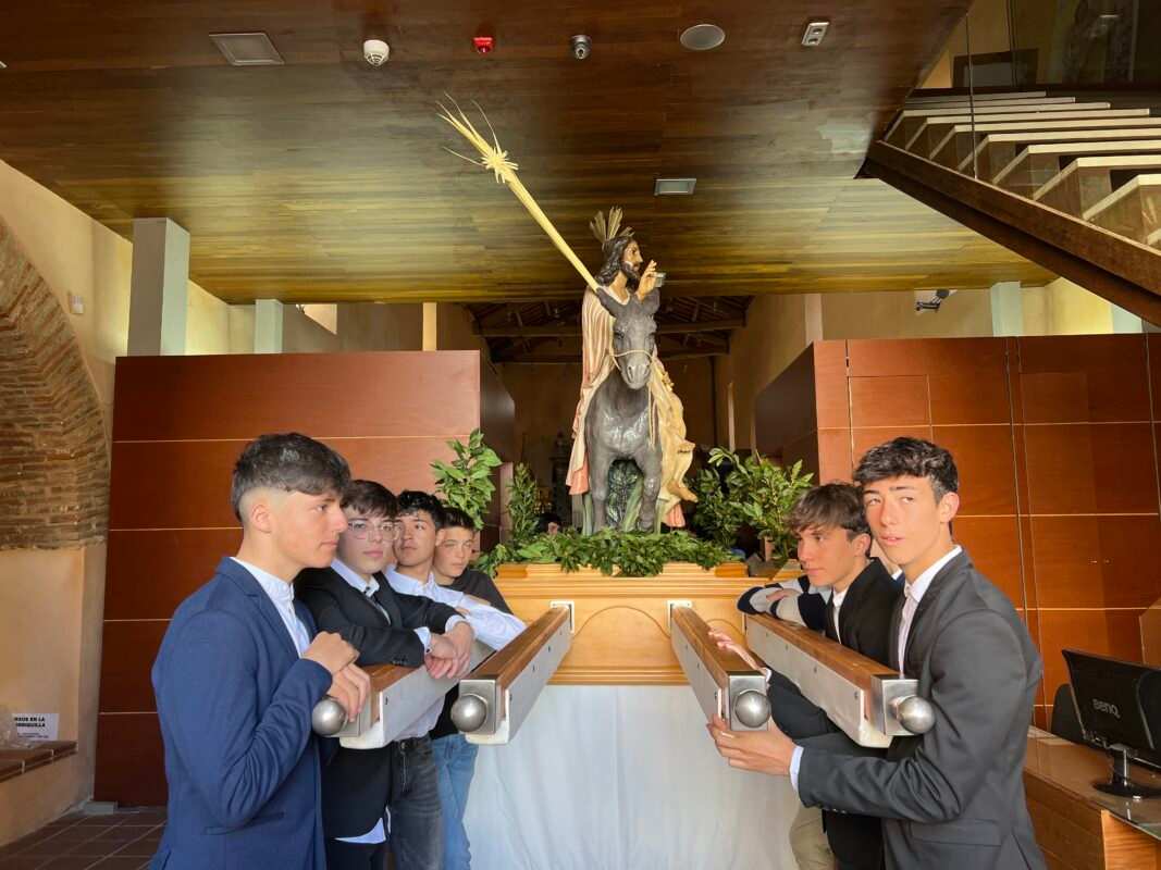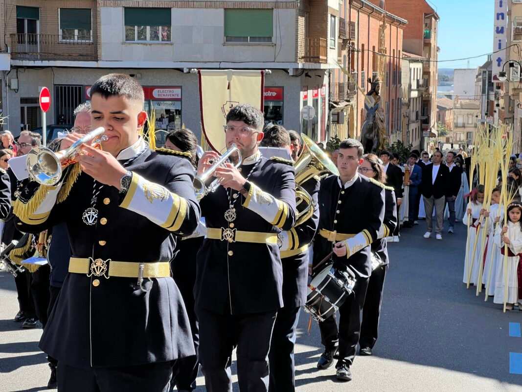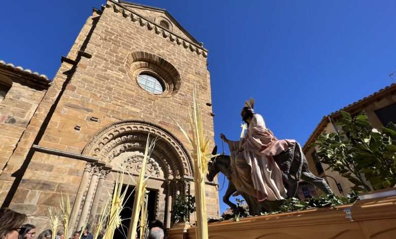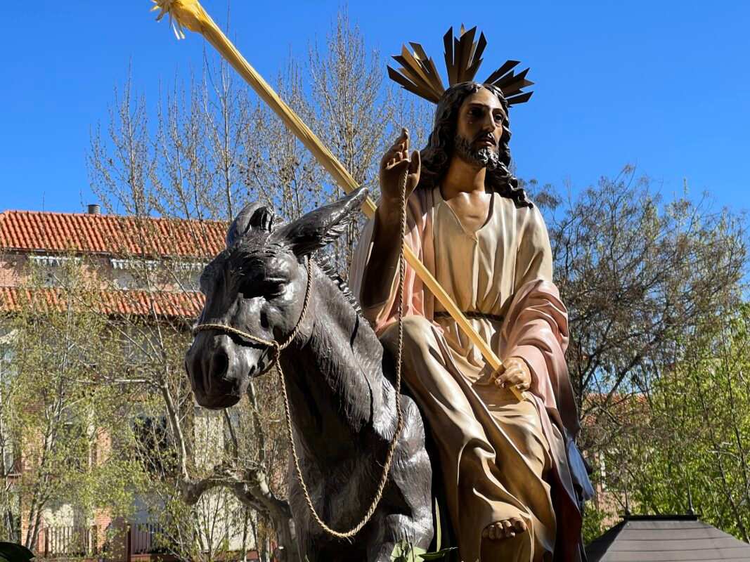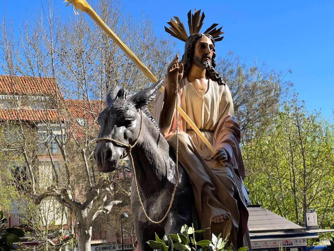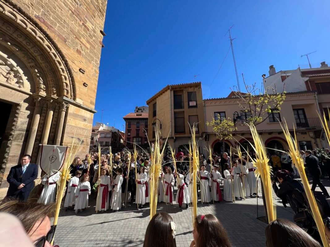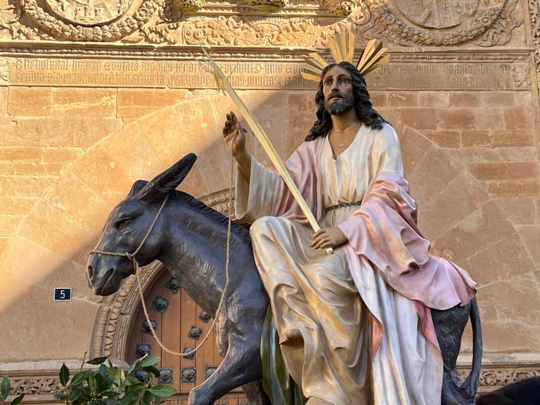 «Partiendo de la Ermita de la Soledad el Paso de Jesús en la Borriquilla, representando la Entrada Triunfal en Jesuralén, acompañado por los niños de las cinco parroquias, portadores de Palmas, pertenecientes a la cofradía de nuestro Padre Jesús a su Entrada en Jesuralén. Recorriendo la calle Santa Cruz, plaza del Grano, calle la Rúa hasta la Iglesia de Santa María la Mayor, donde se ha celebrado la Misa Solemne, regresando más tarde a la Ermita de la Soledad con el recorrido inverso.