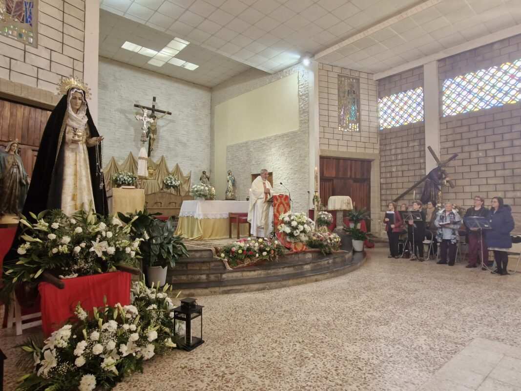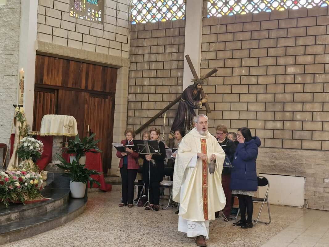 Tras la Procesión del Encuentro de este mediodía se celebró la solemne misa de Pascua, en la que el párroco Miguel Hernández quiso poner de relieve el camino en común entre todos los feligreses.