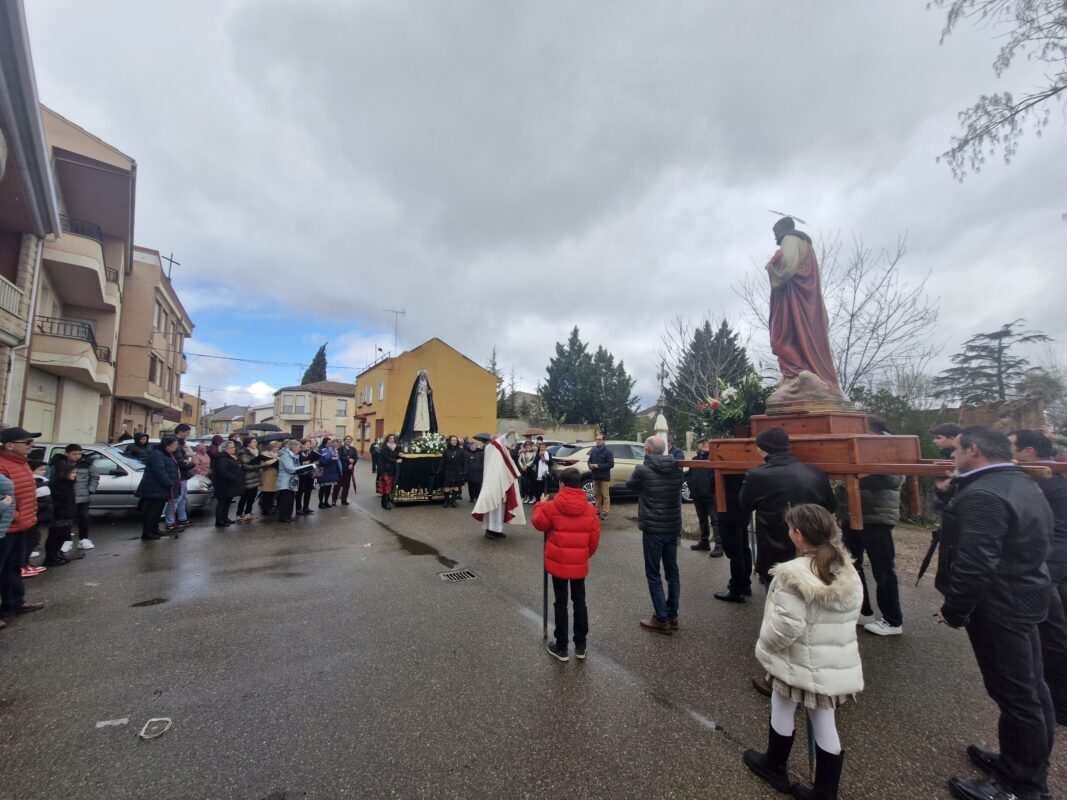 Con esta jornada festiva y alegre, se pliegan las tablas del abanico de actos religiosos de la Semana Santa. Con el encuentro de las imágenes del Resucitado y de la Virgen Dolorosa en la calle Cancillas, en Santibáñez de Vidriales, en las inmediaciones de la iglesia parroquial de San Juan Bautista, se cierran los actos semanasanteros en los que ha primado la devoción y compromiso comunitario.
