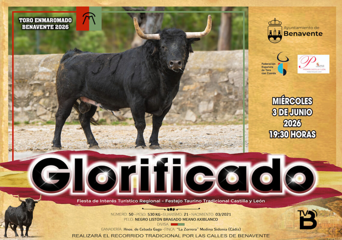‘Glorificado’, el Toro Enmaromado 2026 de Benavente ya tiene nombre