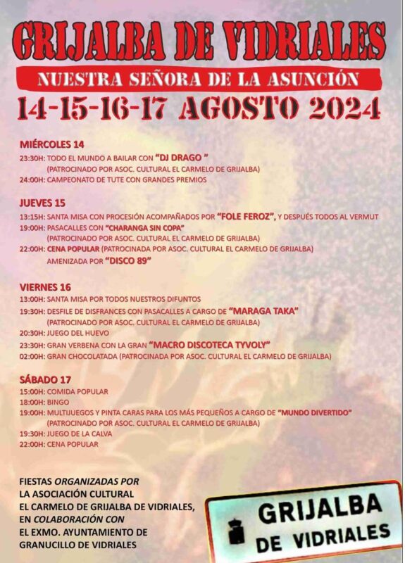 Un variado programa de actos se organiza desde este miércoles hasta el sábado 17 de agosto en el que se incluyen concursos, pasacalles, cena popular, desfiles de disfraces, juegos autóctonos, chocolatada, verbenas y actos religiosos.