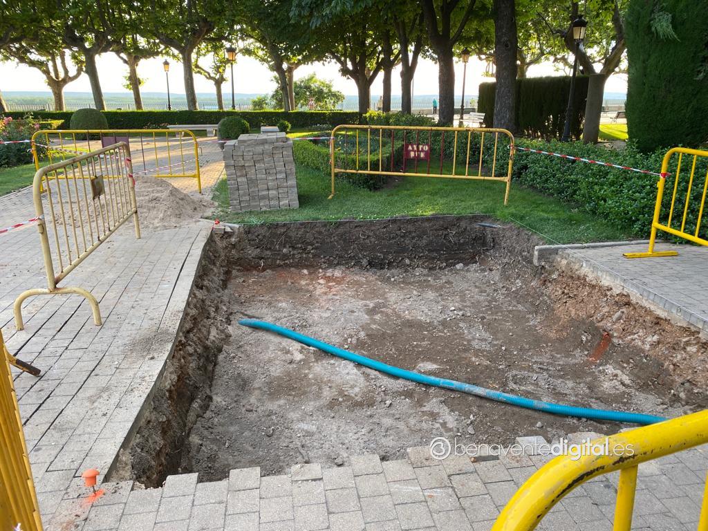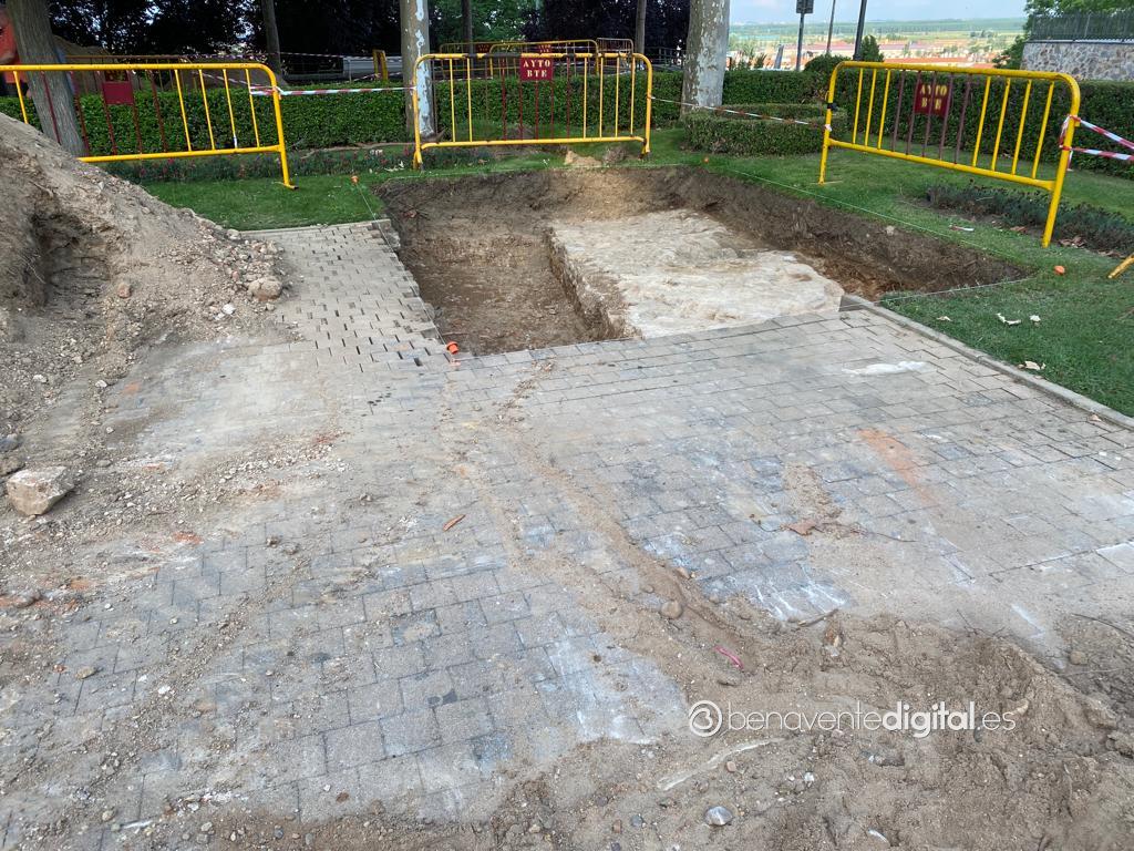 Serán ahora los técnicos de Patrimonio quien determinen la importancia de la piedra en las excavaciones. Unas actuaciones de obra que permiten, en algunas catas, visualizar solados con dibujos en forma de espiga. Son muchos los vecinos de Benavente que estos días se han acercado a la zona de las excavaciones y se preguntan por los trabajos que se están realizando. Preocupados, además, por cómo afectará a una zona tan bonita como los jardines de la Rosaleda. Y también por el objetivo de estos trabajos que están causando mucha expectación.