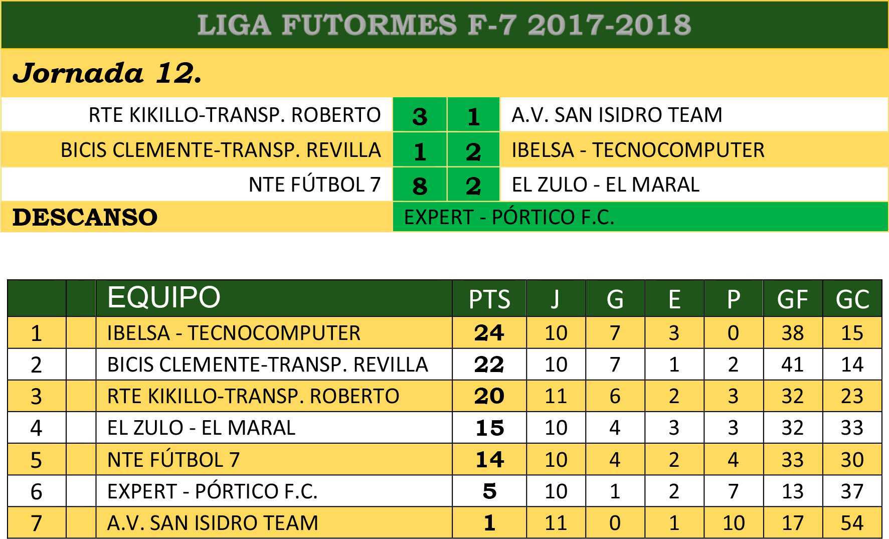 En la Liga Futormes de Fútbol 7 también hubo cambio de líder tras el resultado final del encuentro que medía al primero y segundo clasificado de la tabla y donde el Ilbesa-Tecnocomputer salía victoriosos intercambiando posiciones en la tabla.
