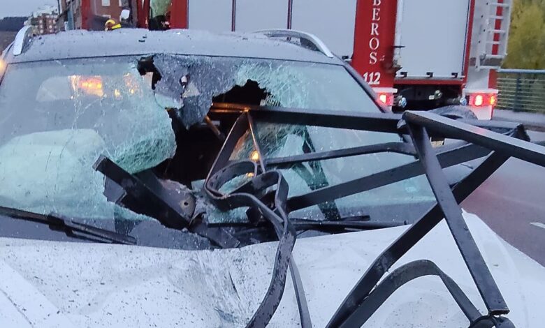 Esta mañana, un accidente vial impactante tuvo lugar en la avenida Fernández Ladreda, a la altura del Estadio Reino de León. Un turismo tuvo un accidente y la valla de hierro de la mediana se clavó en el vehículo, rompiendo el parabrisas y atravesando el interior del coche.