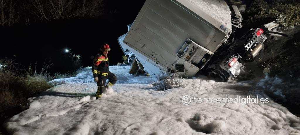 El accidente se produjo tras cruzar la mediana e invadir el carril contrario de la autovía saliéndose del mismo y cayendo por un desnivel por el lado contrario. El vehículo que transportaba diferentes tipos de carga, entre ellas mercancías consideradas como peligrosas, disolventes y pinturas, y que en parte salieron al exterior de la caja.