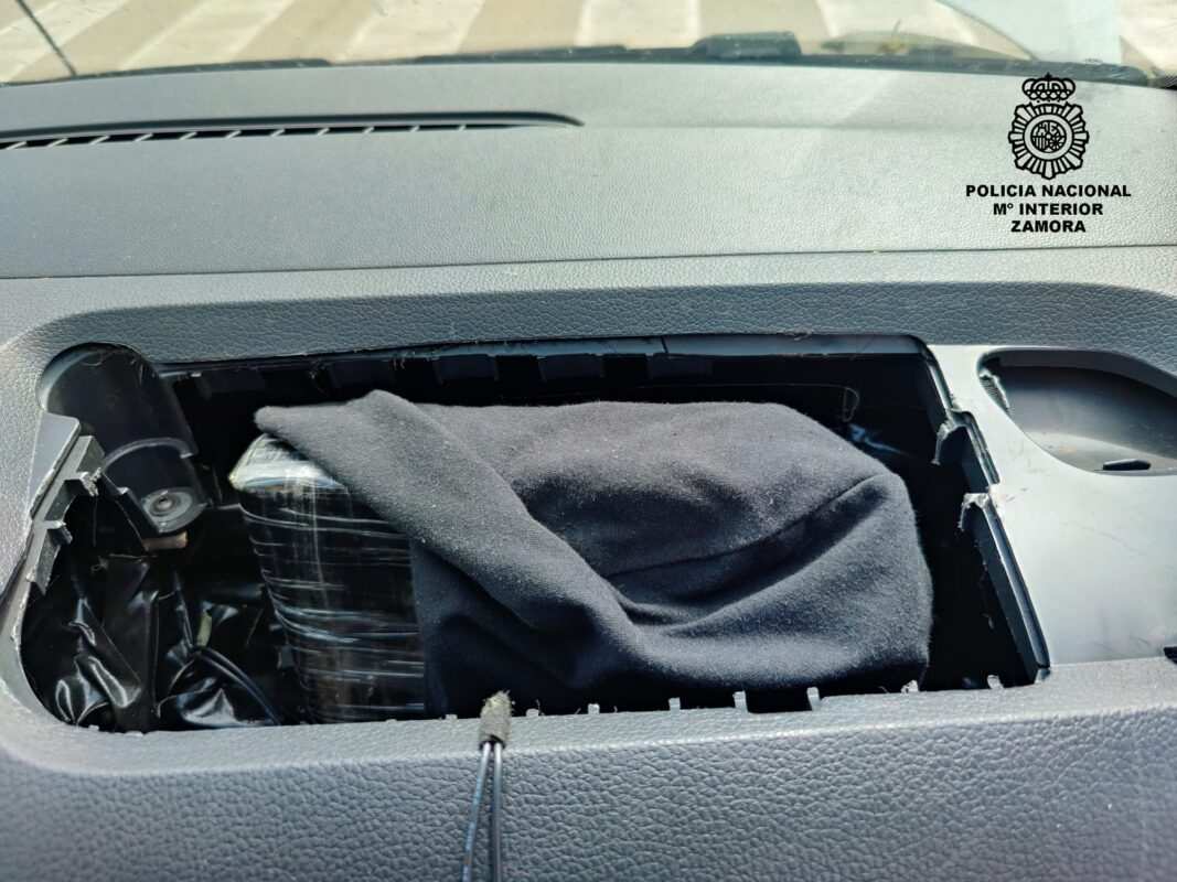 Agentes de la Comisaría de Policía Nacional de Zamora han incautado un kilo de cocaína y más de seiscientos euros en un coche con un sofisticado habitáculo o “caleta” destinado a la ocultación de la sustancia estupefaciente. En el operativo han sido detenidas tres personas, dos hombre y una mujer.