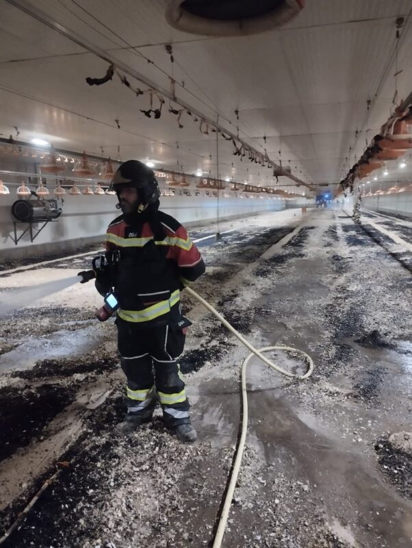 La nave, destinada a la crianza de pollos, se encontraba vacía en el momento del incendio. Ya que no estaba prevista la llegada de nuevas crías hasta hoy, lo que evitó mayores consecuencias.