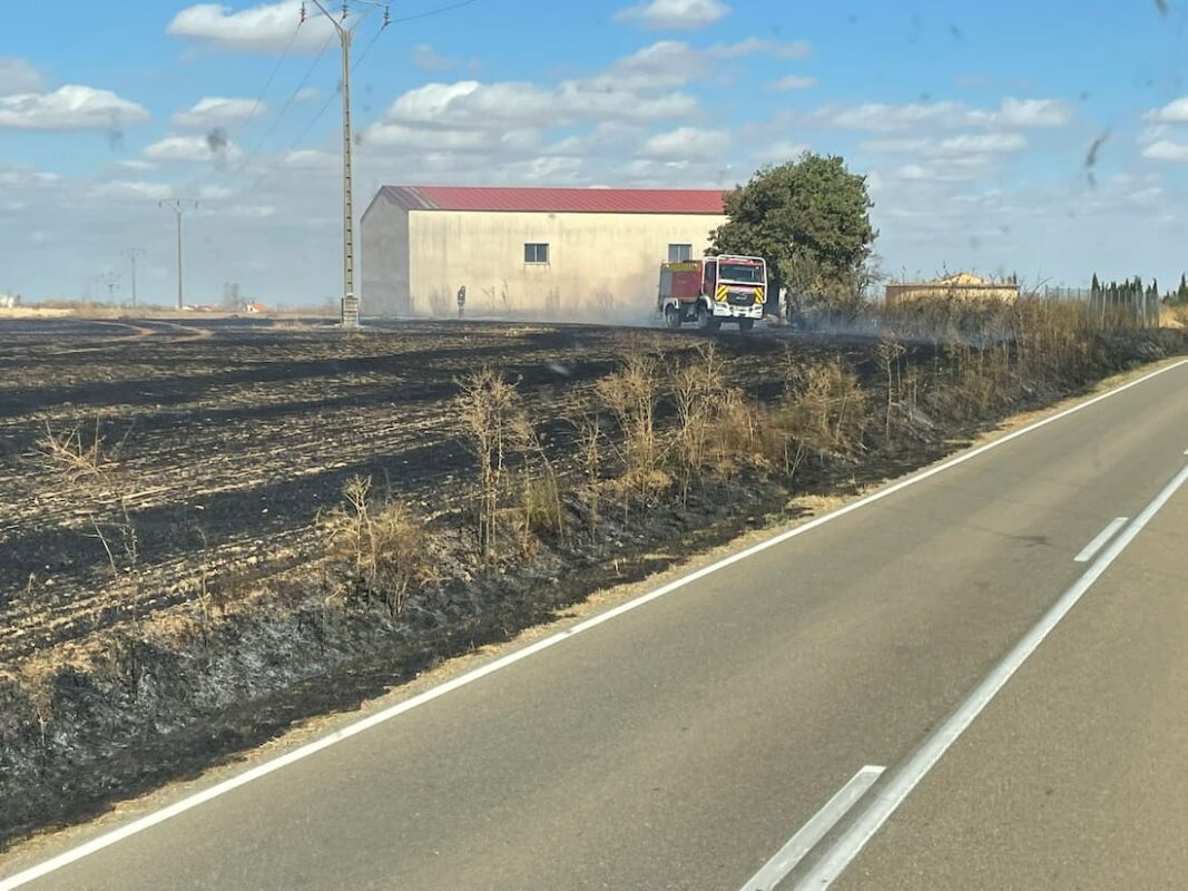 El incendio afectó a tierras de cereal ya cosechadas, próximas a una nave y dos fincas de regadío, sin que se produjeran daños personales.
