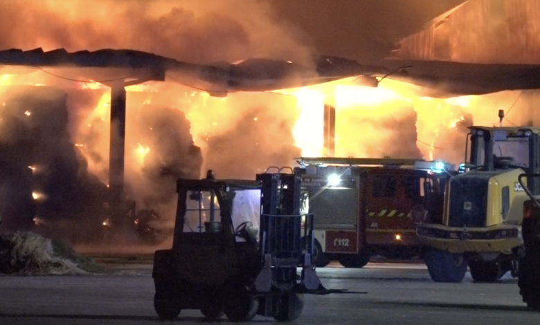 Poco después de las once de la noche se declaraba un incendio en la empresa zamorana Cobadu. El fuego devoró seis naves de las instalaciones, las cuales albergaban pacas de alfalfa.