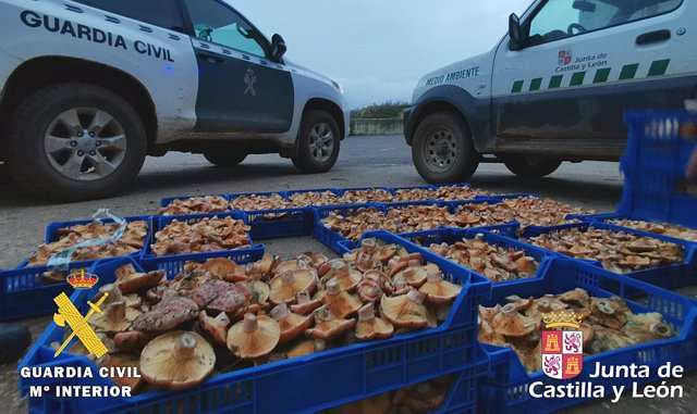 Efectivos del Seprona de la Guardia Civil y Agentes Medioambientales de la Junta de Castilla y León han intervenido 76 kilogramos de níscalos (Lactarius deliciosus) recolectados de manera irregular al superar el peso máximo autorizado por persona, lo que ha supuesto la confección de un acta denuncia.