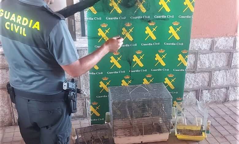 La Guardia Civil investiga al supuesto autor de un delito contra el medio ambiente por captura de aves protegidas con artes prohibidas.