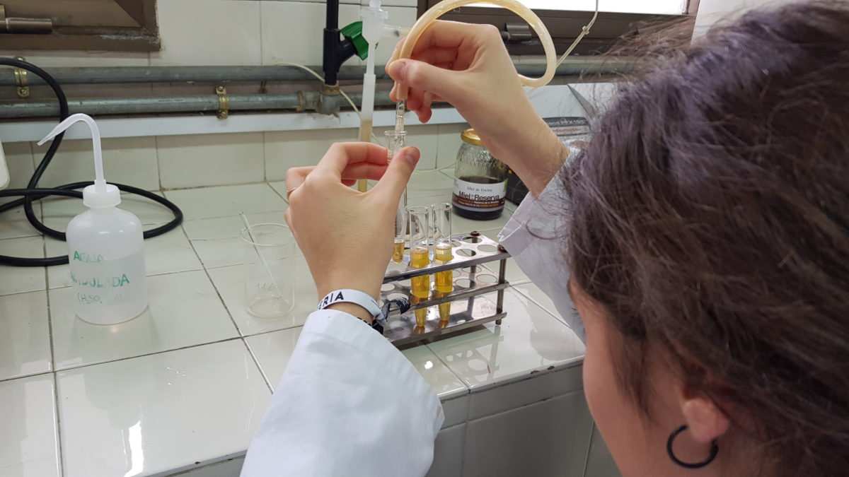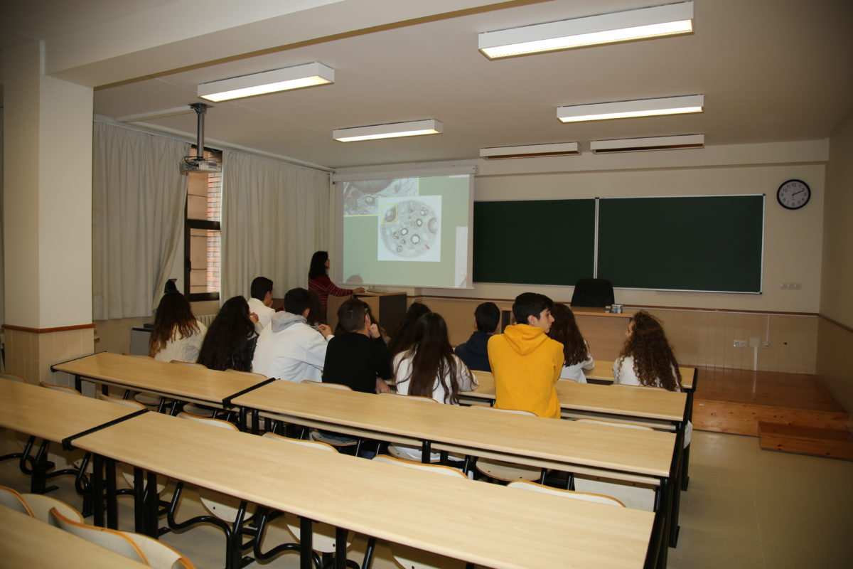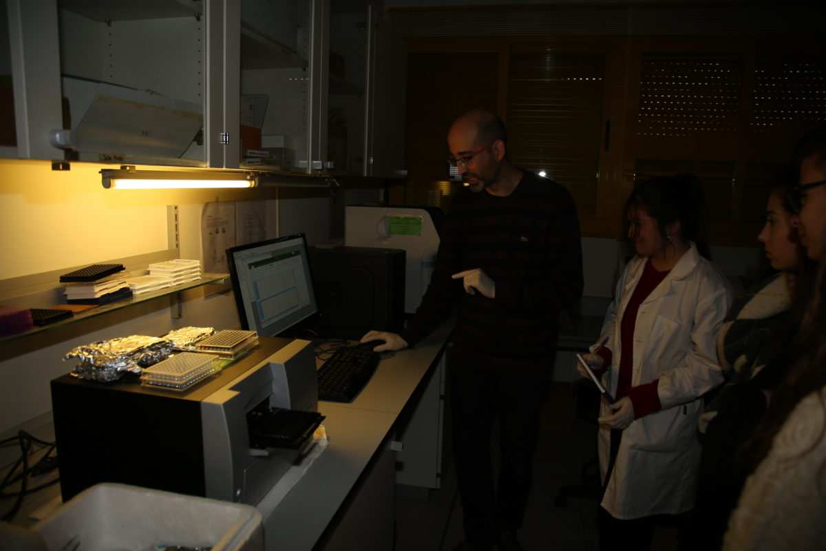 Por último, estuvieron en el LTI (Laboratorio de técnicas instrumentales e instalación radiactiva) para observar distintos tipos de laboratorios que utilizan los científicos e investigadores de la Universidad. El Dr. Felipe Martínez Pastor, investigador del INDEGSAL (Instituto de Desarrollo Ganadero y Sanidad Animal) que trabaja en la biotecnología de la reproducción asistida, explicó a los alumnos su trabajo con las especies bovina y porcina en el campo de la calidad espermática y la mejora de las técnicas de congelación de esas células en nitrógeno líquido. Este investigador colaborará activamente en el proyecto “Detección de bisfenol A mediante un modelo de células espermáticas”.