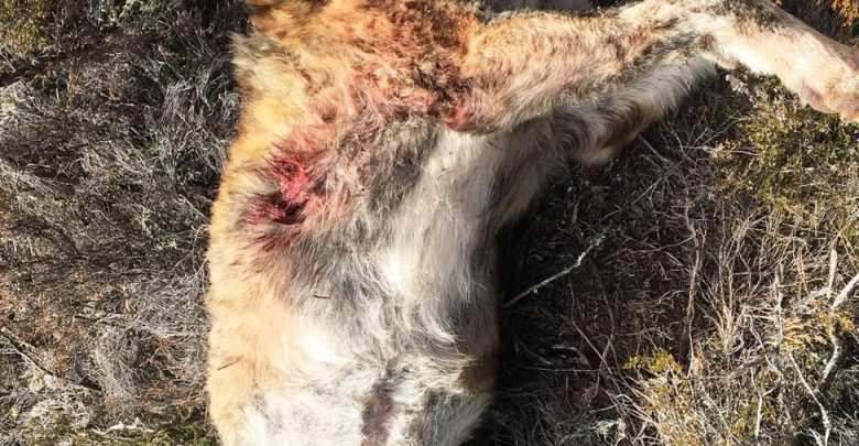Dos mastines fueron ab atidos a tiros en un cebadero de aguardopara la caza del lobo.