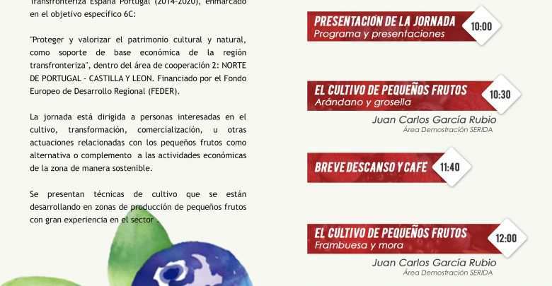 El 3 de mayo se celebrará una jornada sobre El cultivo de los pequeños frutos en Zamora, que tendrá lugar en Tábara (edificio del Reloj). La jornada se realizará durante toda la mañana, de 9 a 14 horas, y en ella especialistas abordarán aspectos relacionados con el cultivo de arándanos, grosellas, frambuesas y moras. La elección del lugar tiene que ver con su situación geográfica entre las comarcas de Aliste, Sanabria y Pan, donde existen cultivos de este tipo y donde sus condiciones climáticas los hacen adecuados.