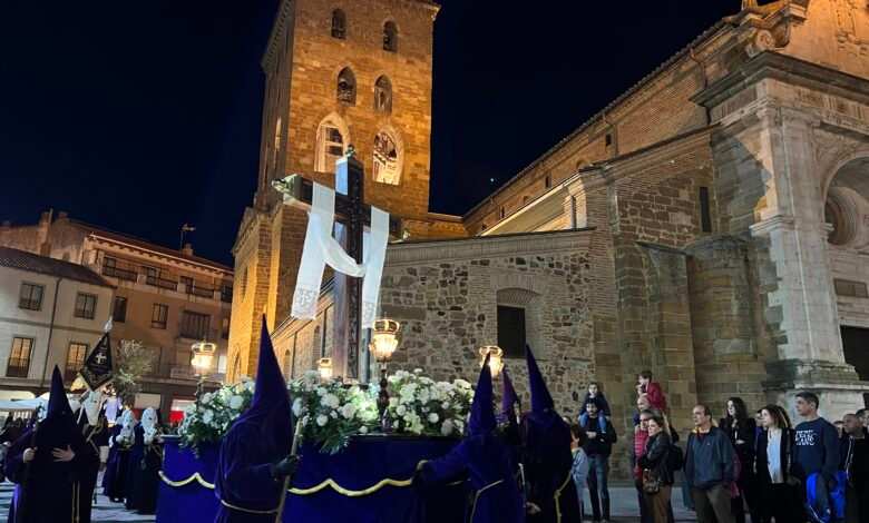 El desfile procesional se inicia en la Iglesia de San Juan del Mercado, recorre la plaza de San Juan, calle San Juan, calle de los Herreros, plaza de la Madera, calle Sancti Espíritus, plaza de Juan Carlos I, calle Jesús García Muñoz, plaza de Santa María, calle la Rúa, corrillo de San Nicolás, calle Santa Cruz, finalizando en la plaza de San Francisco.