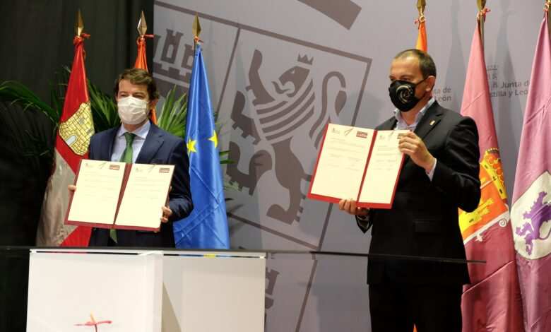El presidente de la Junta de Castilla y León, Alfonso Fernández Mañueco, y los presidentes de las nueve diputaciones provinciales han suscrito hoy, en la localidad leonesa de Mansilla de las Mulas, dos importantes protocolos de colaboración que inciden en dos líneas prioritarias en el mundo rural: Internet y el acceso a la vivienda.