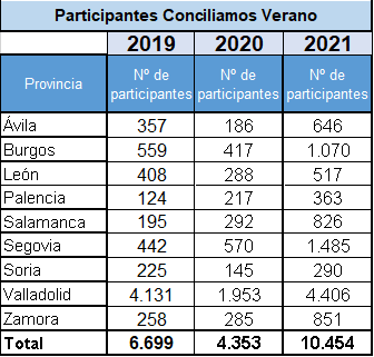 En cuanto al volumen de centros adheridos al servicio, los números también son crecientes. En el periodo estival de mayor oferta han desarrollado este programa un total de 117 centros ubicados en 110 localidades, frente a los 53 del año pasado. En Burgos, Conciliamos se ha celebrado en 20 centros de otros tantos municipios.