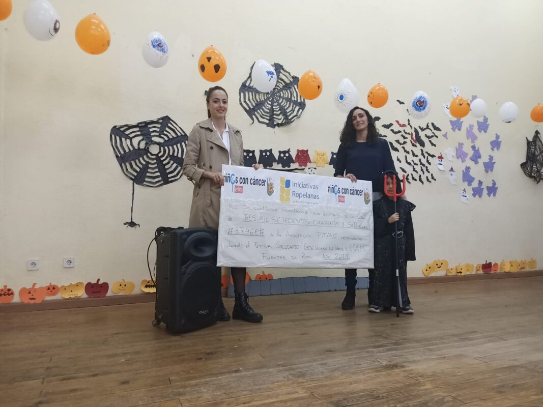 La asociación Pyfano, de padres, familiares y amigos de niños oncológicos de Castilla y León, ha recibido de la mano de la asociación cultural Iniciativas Ropelanas de Fuentes de Ropel una cantidad de 3.746 euros procedente de donaciones y, en especial, de la recaudación obtenida en el festival solidario celebrado el pasado mes de agosto, así como otros 900 euros de donaciones particulares.