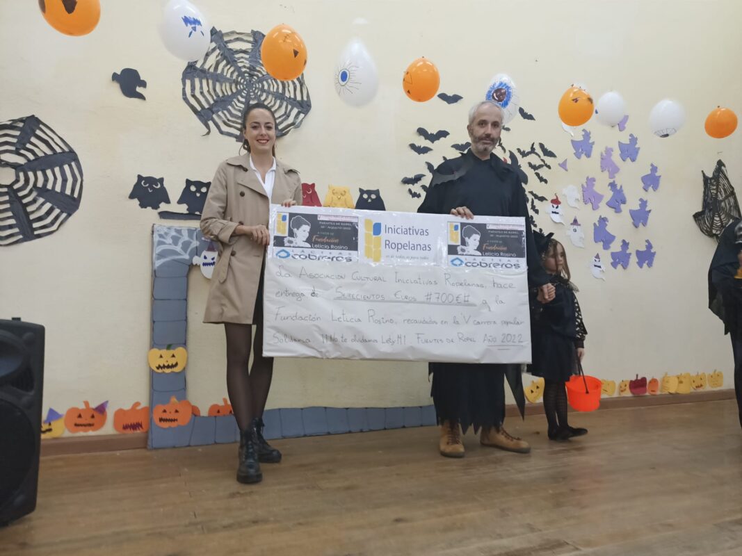 La solidaridad de los ropelanos se ha traducido también con la Fundación Leticia Rosino, Iniciativas Ropelanas también ha hecho entrega de otros 700 euros de la recaudación obtenida de la carrera solidaria a favor de esta fundación.