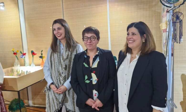 Además de estas esculturas botánicas, Alessandra ha exhibido jarrones de vidrio creados por ella misma, demostrando su habilidad para combinar diversas técnicas artesanales. También presenta varios tapices, incluyendo uno de gran tamaño hecho con papel de periódico, que ha sorprendido tanto a la alcaldesa como a la concejala en una de las salas de la exposición.
