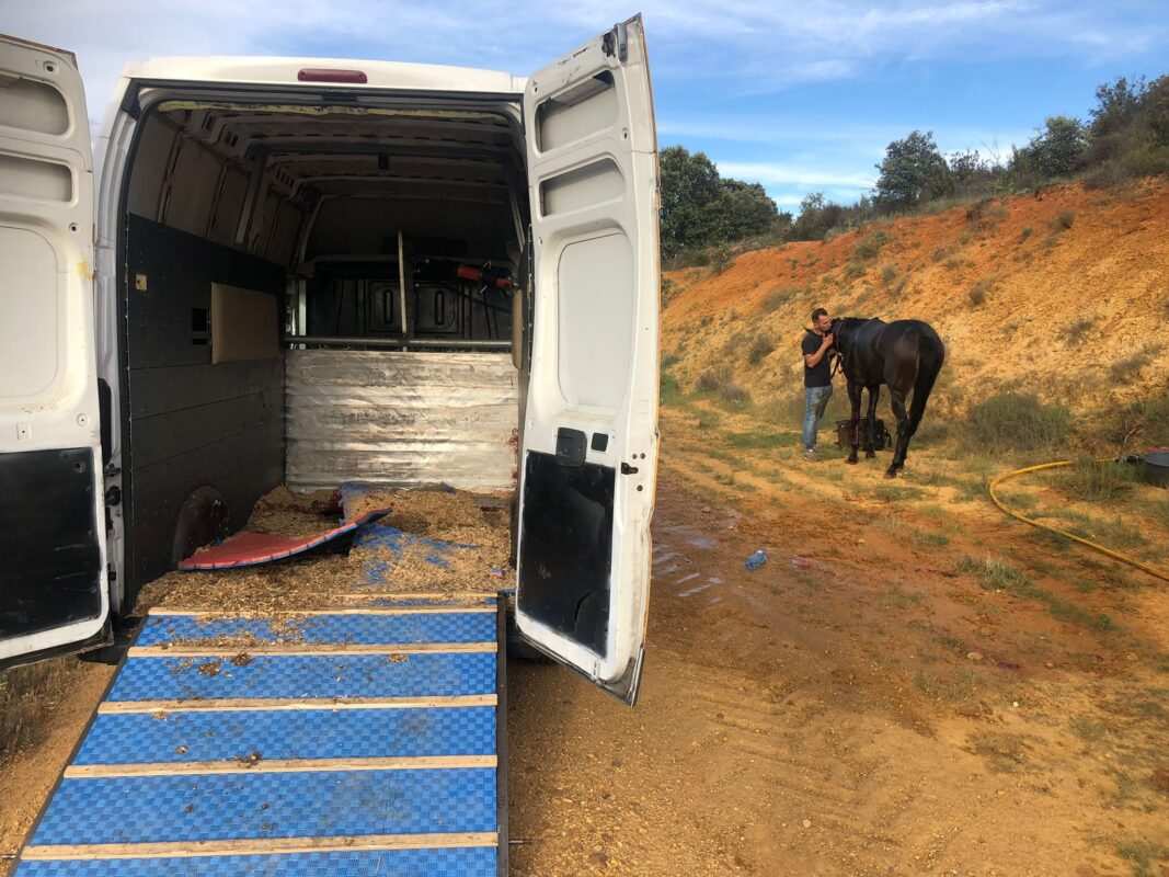 El vehículo se trasladaba hasta Francia donde iban a participar en una carrera de caballos, uno de los cuales ha sufrido daños diversos. Los ocupantes resultaron ilesos.