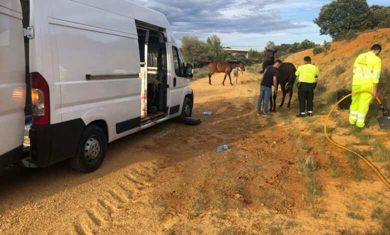 La caida de un caballo que era transportado por una furgoneta en la A-52, en el término de Sitrama de Tera, en dirección hasta Francia, ha obligado a intervenir a un amplio operativo al atardecer de este martes.