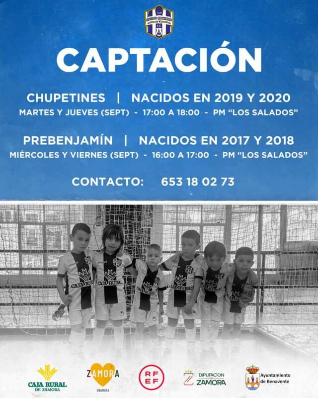 Los padres interesados en que sus hijos formen parte del Atlético Benavente pueden inscribirlos en las jornadas de captación que ya están en marcha. El número de contacto para más información es 653 18 02 73. También se pueden dirigir al club a través de sus redes sociales y sitio web oficial, donde han compartido carteles informativos.