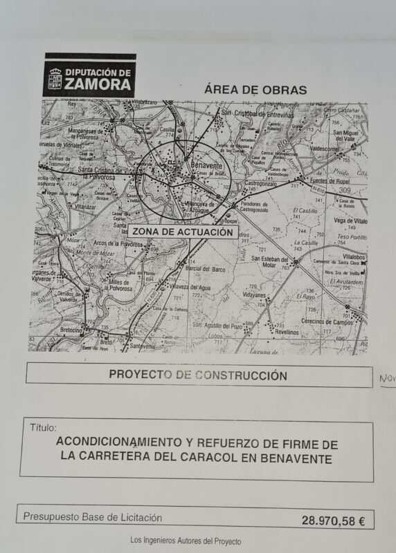 Así también lo atestigua la documentación que fue necesaria para acometer el Proyecto de Acondicionamiento y Refuerzo del firme de la misma del año 2015 al que la Diputación destinó una subvención nominativa de 28.970 euros, extremo que el entonces responsable de Infraestructuras y concejal en el Ayuntamiento benaventano debería conocer dadas las responsabilidades que ejercía ese año.