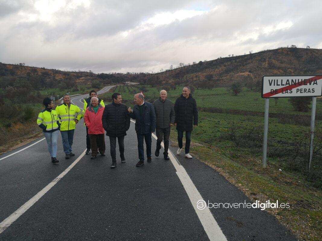 Tanto el vicepresidente primero de la Diputación de Zamora y diputado responsable de Carreteras, José María Barrios, como los alcaldes de Santa Croya de Tera, Juan José Arenas, y de Villanueva de las Peras, Juan García, coinciden en que las obras de acondicionamiento y mejora de la carretera entre ambas localidades «han tardado, pero al final ha quedado bien».