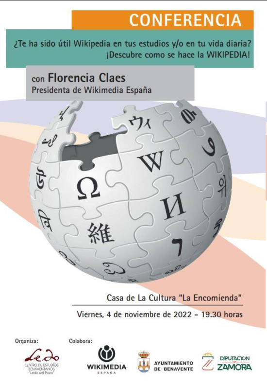 La conferencia, organizada por el Centro de Estudios Benaventanos «Ledo del Pozo», será impartida por Florencia Claes, presidenta de Wikimedia España y la experta Carmen Galdón.