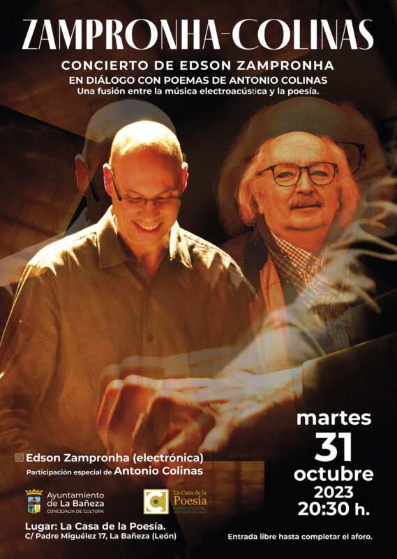 Este diálogo entre la música y la poesía creará atmósferas cargadas de sensibilidad que cautivarán los sentidos de la audiencia, sumergiéndola en un mundo donde las emociones fluyen de manera inigualable. El concierto es una fusión única donde estas dos artes se entrelazan creando una experiencia íntima espectacular. Edson Zampronha, un virtuoso compositor de una nueva música electroacústica creará atmósferas cargadas de sensibilidad que dialogarán con la poesía de Antonio Colinas, que recitará sus propios versos.
