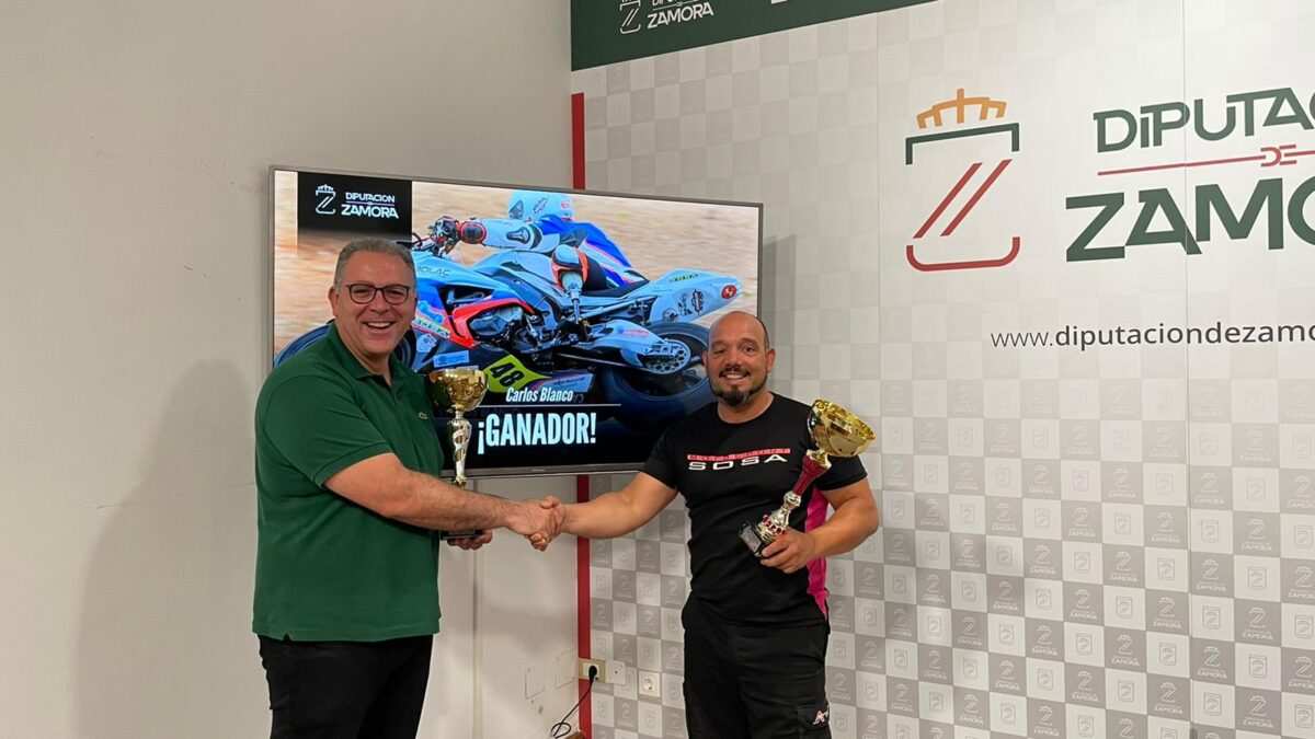 Carlos Blanco, corre en una moto BMW S-RR-1000 en la Handy ESBK (pruebas de máximo nivel para pilotos con discapacidad física de más del 33 por ciento), y este año ha vencido en las cuatro pruebas disputadas- dos carreras en Jerez de la Frontera y dos en Cartagena- que le han dado el título de Campeón de España 2022 en esta categoría con lo que ha reeditado el triunfo absoluto del 2021.