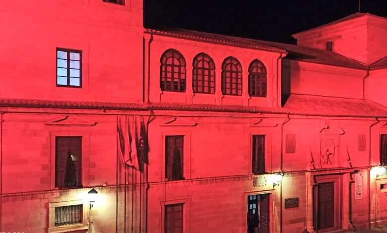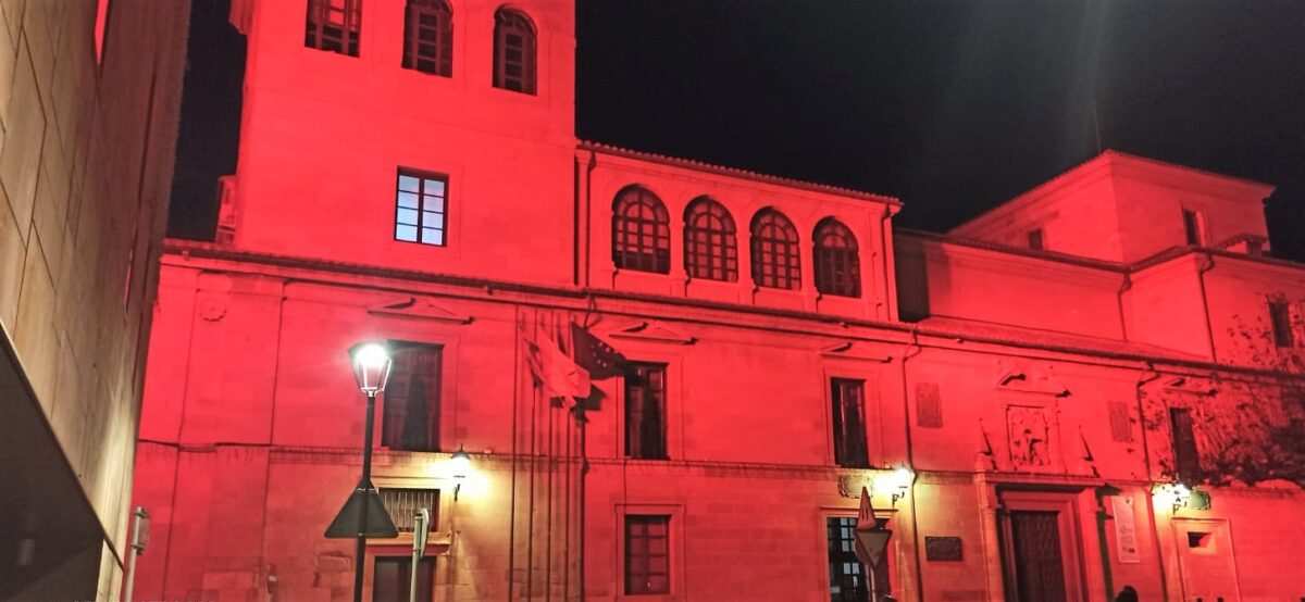La Diputación de Zamora ha iluminado de rojo hoy la fachada de la sede principal en la Plaza de Viriato con motivo de la celebración del Día Mundial de la Lucha Contra el SIDA.